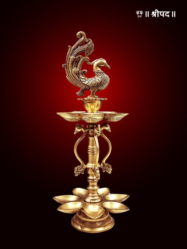 Perfect for gifting on weddings, housewarmings, and religious occasions, this Peacock Brass Lamp is a symbol of divine radiance and heritage.
