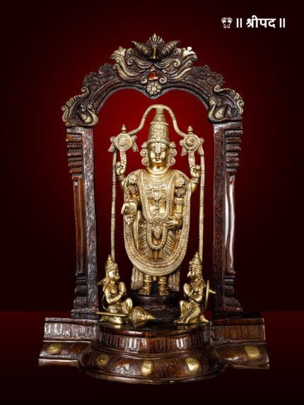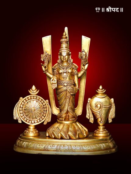 The 11-inch Lord Venkateshvara as Balaji at Tirupati Brass Statue is a divine masterpiece that embodies the grace and magnificence of the revered deity worshipped at the holy Tirumala temple. Lord Venkateshvara, also known as Balaji, is considered the supreme preserver, symbolizing hope, wealth, and prosperity.