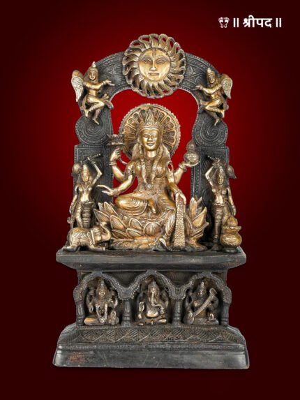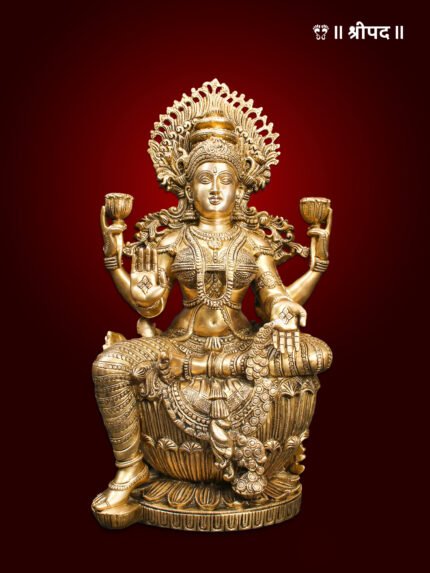 Made from high-quality brass, this statue serves as a perfect addition to pooja rooms, temples, or spiritual spaces, inviting divine blessings of prosperity, success, and wisdom into the home.