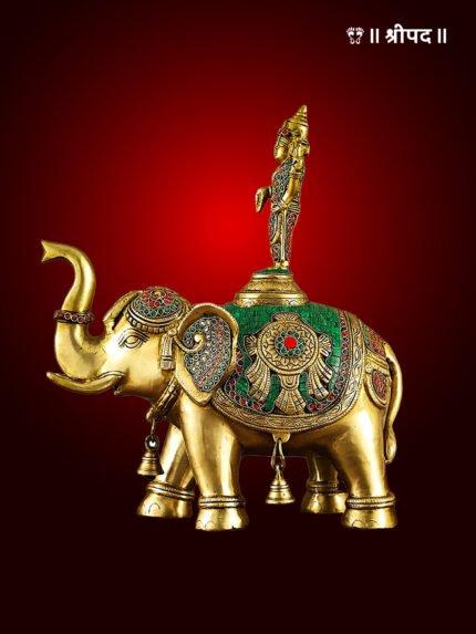 The elephant, revered in Indian tradition, represents power, stability, and good luck. Crafted from high-quality brass, this masterpiece boasts fine detailing and a radiant golden finish, making it an ideal addition to your home, office, or temple space. Placing it in the north or east direction enhances positivity and attracts blessings.