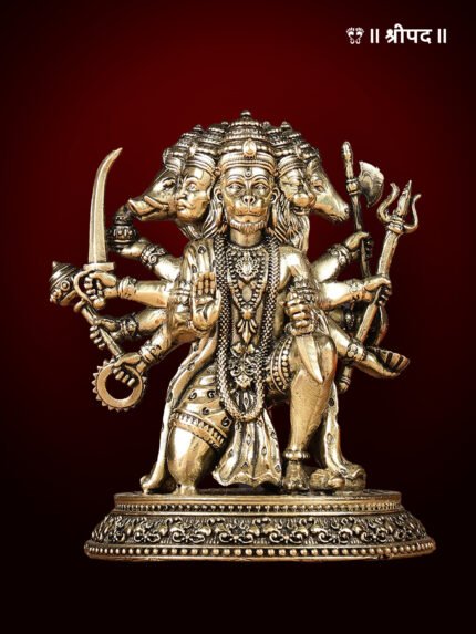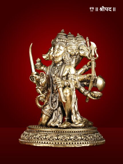 The polished brass finish enhances its divine aura, reflecting the timeless craftsmanship of traditional artisans. Keeping this idol in your puja room or workspace invites positivity, courage, and protection.