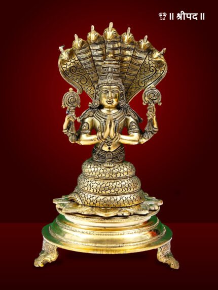 The 10" Great Sage Patanjali Brass Idol is a stunning and meaningful tribute to the revered sage, considered the father of yoga and the author of the Yoga Sutras. This handmade brass statue captures the sage’s divine persona with intricate craftsmanship that reflects his wisdom and spiritual stature. Sage Patanjali is depicted in his iconic form, half-human and half-serpent, symbolising the union of the physical and spiritual realms. The serene expression on his face exudes tranquility and enlightenment, embodying the essence of yoga and self-realisation.