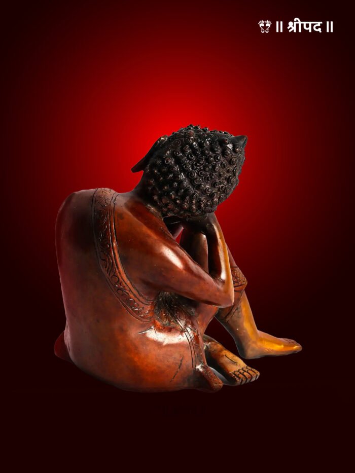 The 8-inch Japanese Thinking Buddha Brass Sculpture is a beautifully crafted piece that captures the essence of calmness and wisdom. Expertly made from high-quality brass, the sculpture exhibits intricate detailing and a smooth finish, highlighting the peaceful meditative posture of the Buddha. The Buddha is depicted with a serene expression, his hand gently resting on his lap, and his eyes closed in deep contemplation, symbolizing introspection and spiritual enlightenment. The pose reflects the Zen philosophy that emphasizes mindfulness and inner peace. Its size makes it perfect for display in homes, offices, or meditation spaces, bringing a sense of tranquility and balance to any environment. The polished brass surface adds a warm, golden glow to the sculpture, enhancing its beauty. This piece not only serves as an artistic representation but also as a spiritual symbol, evoking a sense of peace and serenity wherever it is placed