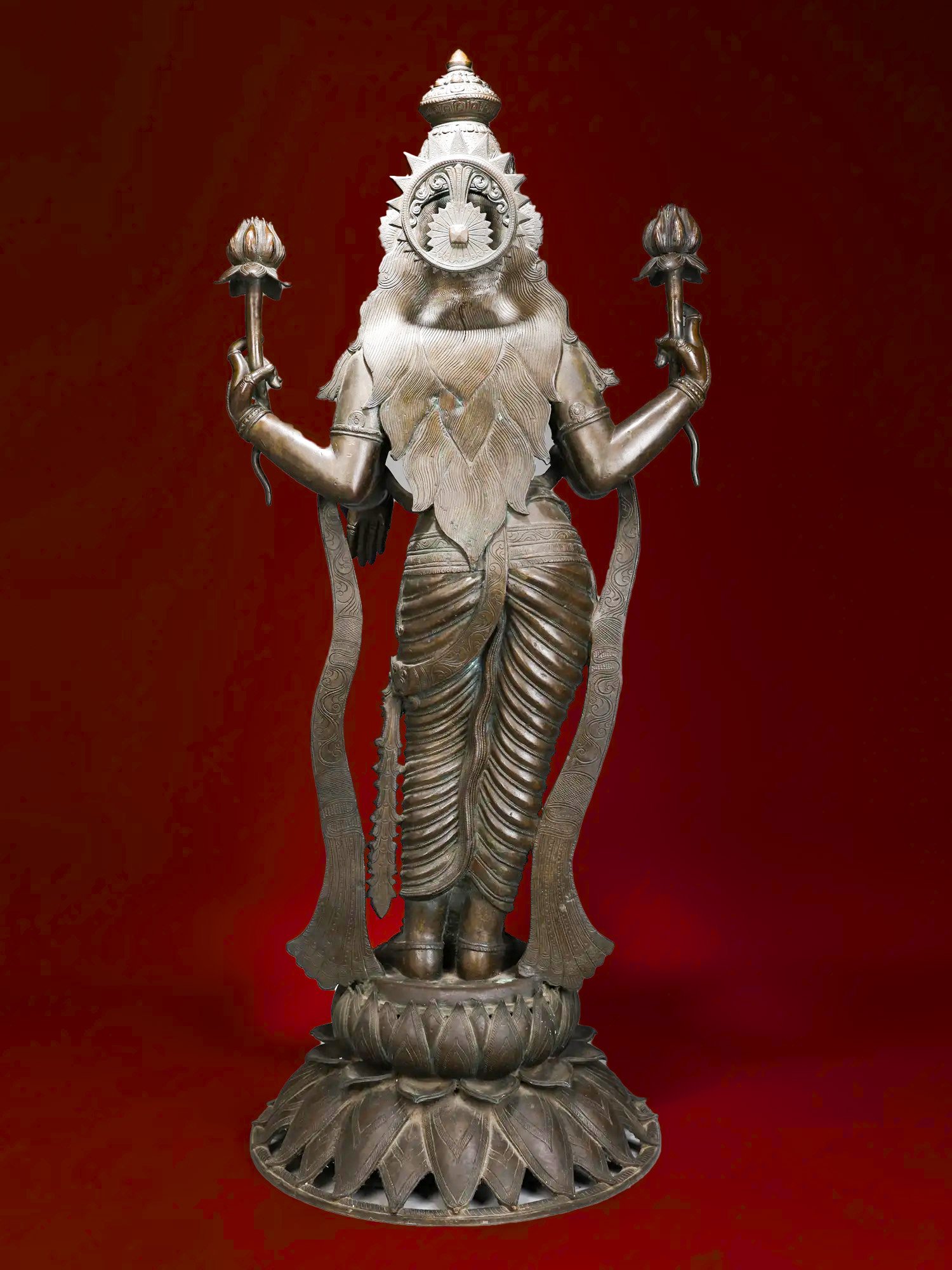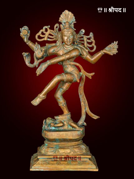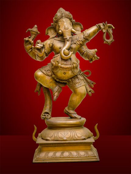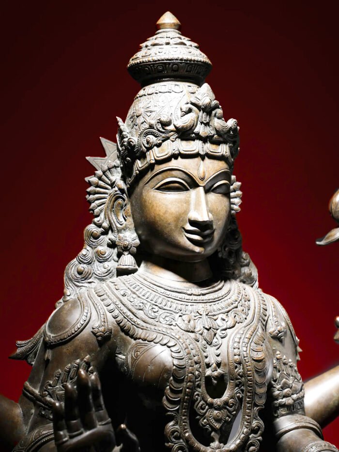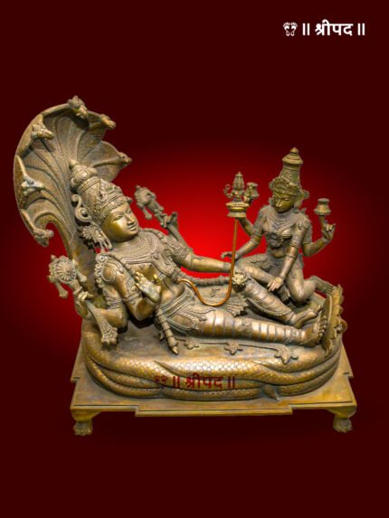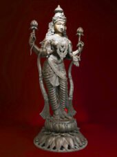 The most sacred and powerful gem to emerge from the cosmic churning of the ocean, or Samudra Manthan, is Sri Lakshmi. Her divine arrival from the ocean depths is beautifully captured in this magnificent, superfine four-foot bronze statue. With a posture that seamlessly blends movement and stillness, the sculpture evokes the moment of Lakshmi’s arrival at the dawn of creation.