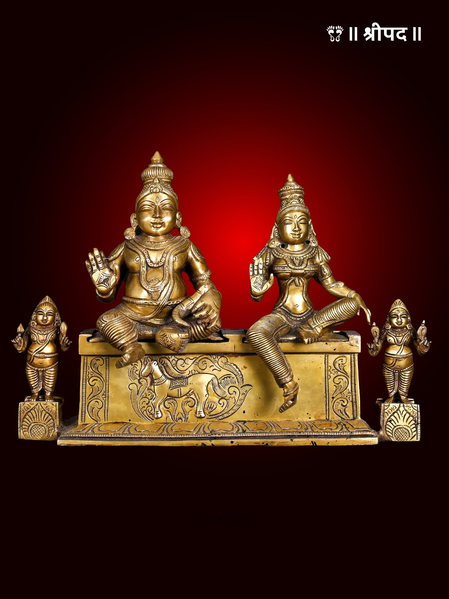 The 16-inch Blessing Lord Kubera with Goddess Lakshmi Brass Statue is a divine and auspicious representation of Lord Kubera, the god of wealth, and Goddess Lakshmi, the goddess of prosperity and abundance. This beautifully crafted brass statue showcases the pair in a blessed and harmonious form, symbolizing the perfect union of wealth and prosperity. Lord Kubera is depicted in a regal posture, holding his treasure pot, while Goddess Lakshmi, seated gracefully beside him, extends her hand in a gesture of blessing, showering coins of wealth and fortune.