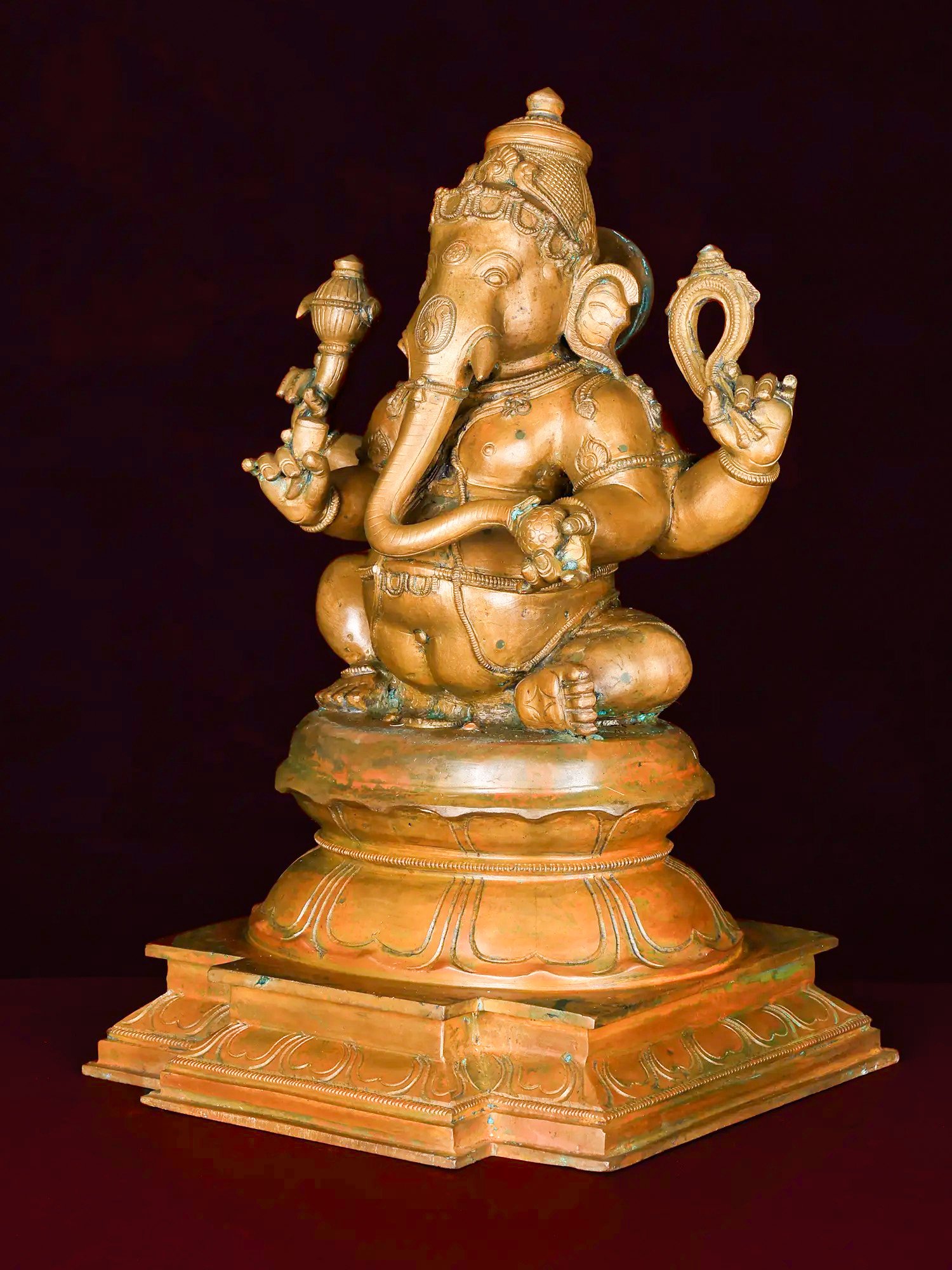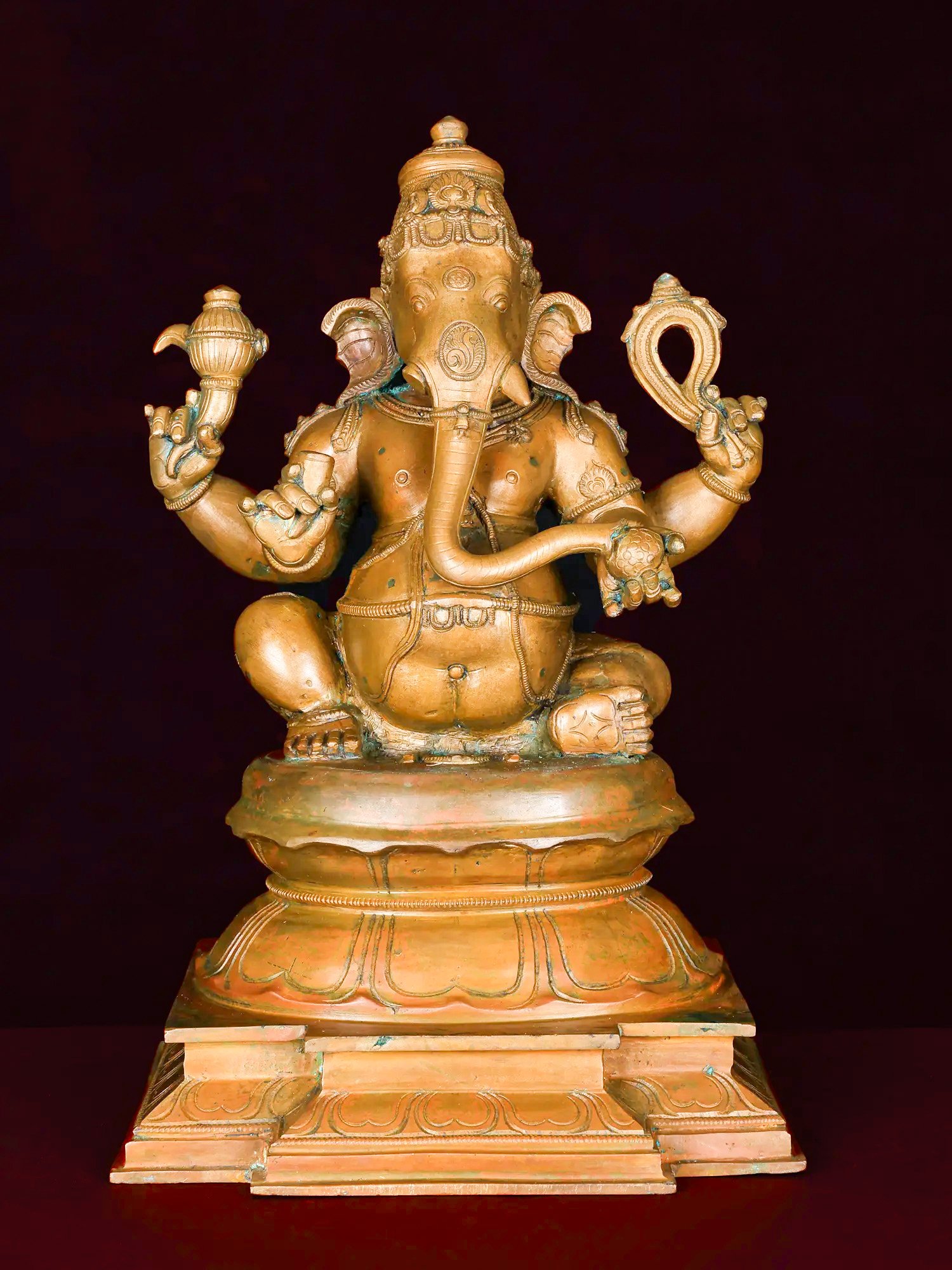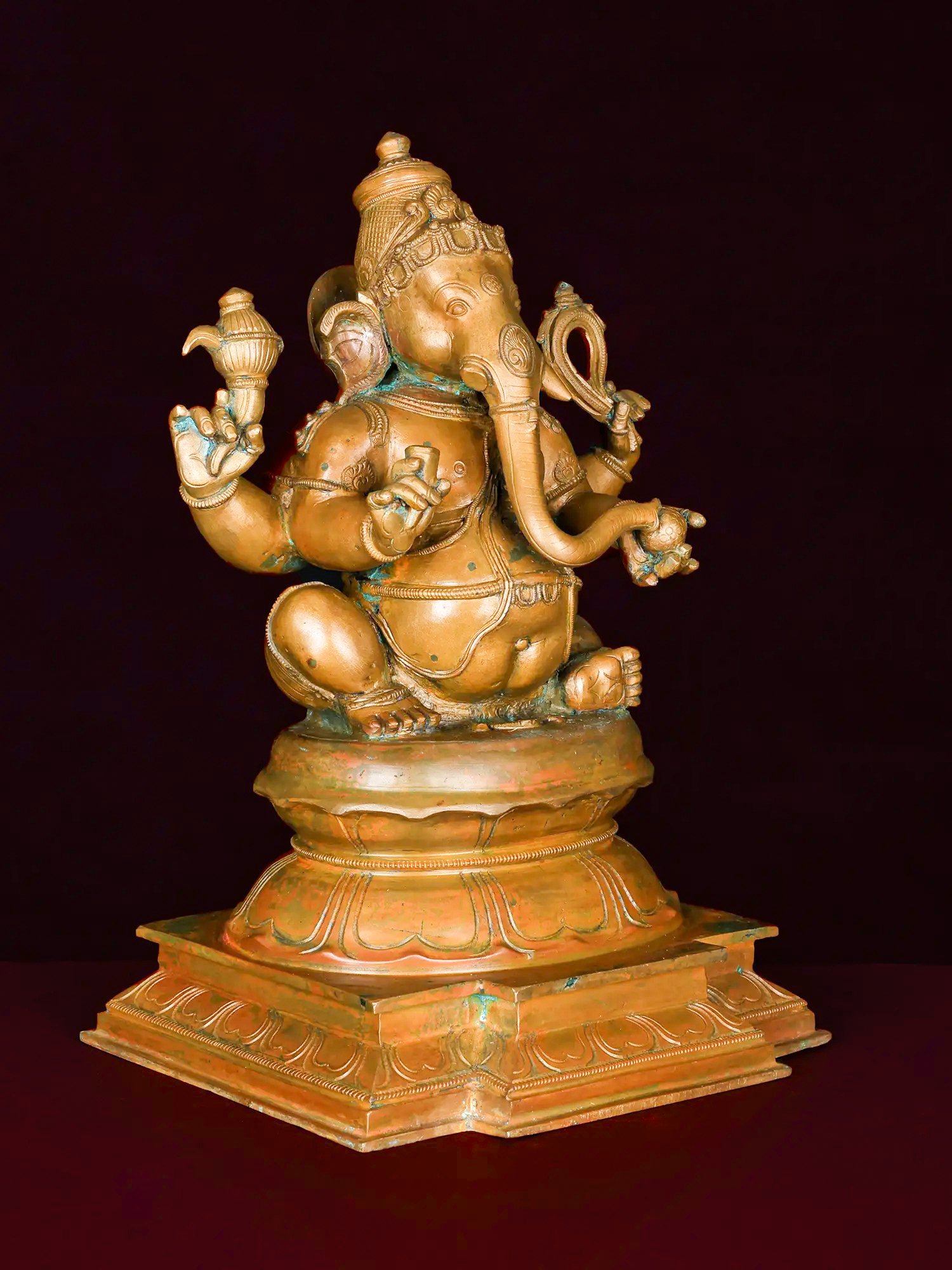 Chaturbhuja Bhagwan Ganesha Seated on Lotus | 14-Inch | Bronze