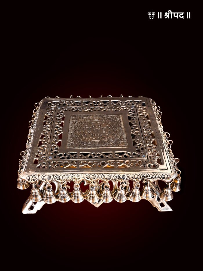 Enhance the divinity of your puja space with this beautifully crafted 5-inch brass chowki, perfect for placing your beloved deities, yantras, or sacred objects. Made from premium-quality brass, this chowki offers durability, a timeless golden sheen, and a traditional aesthetic that blends seamlessly with any spiritual setup. Its sturdy design provides an elevated platform for idols, ensuring reverence and sanctity during worship.