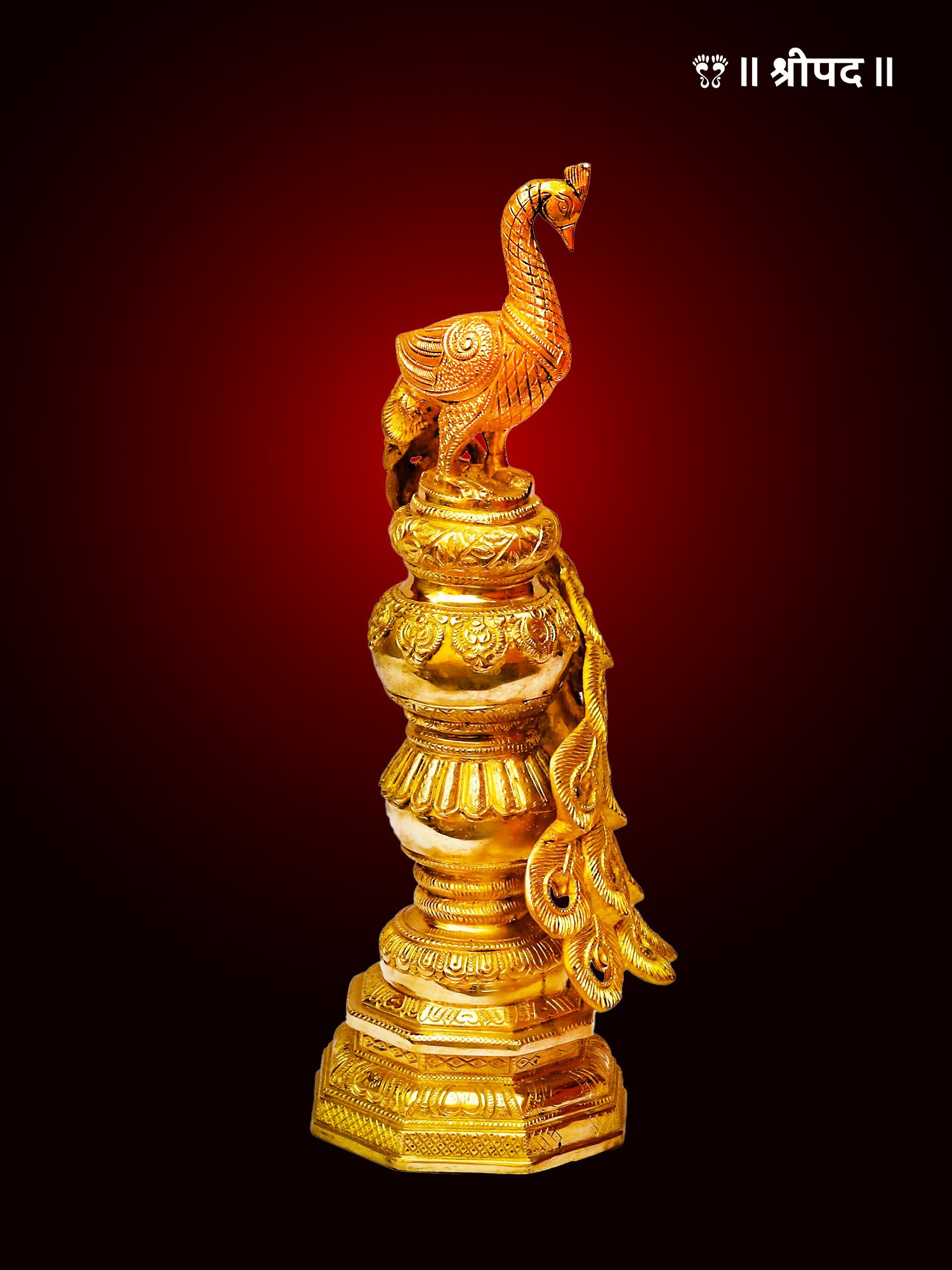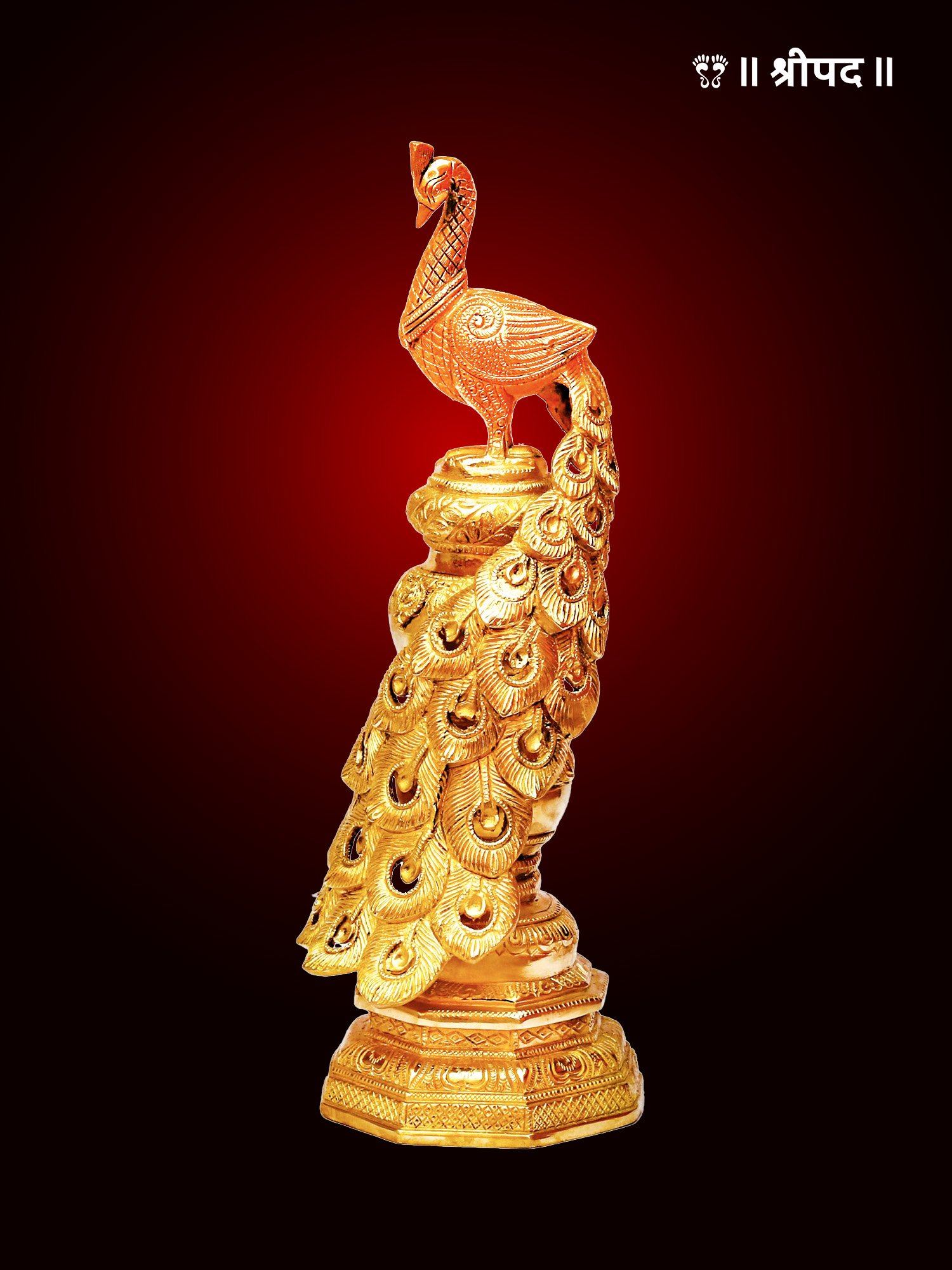 Made from high-quality brass, the statue boasts a radiant golden finish that adds a regal and timeless charm to any space. The intricate detailing of the feathers, body, and delicate features highlights the skill and dedication of Indian artisans. The flowing posture of the peacock evokes a sense of movement, making it a striking addition to any decor.