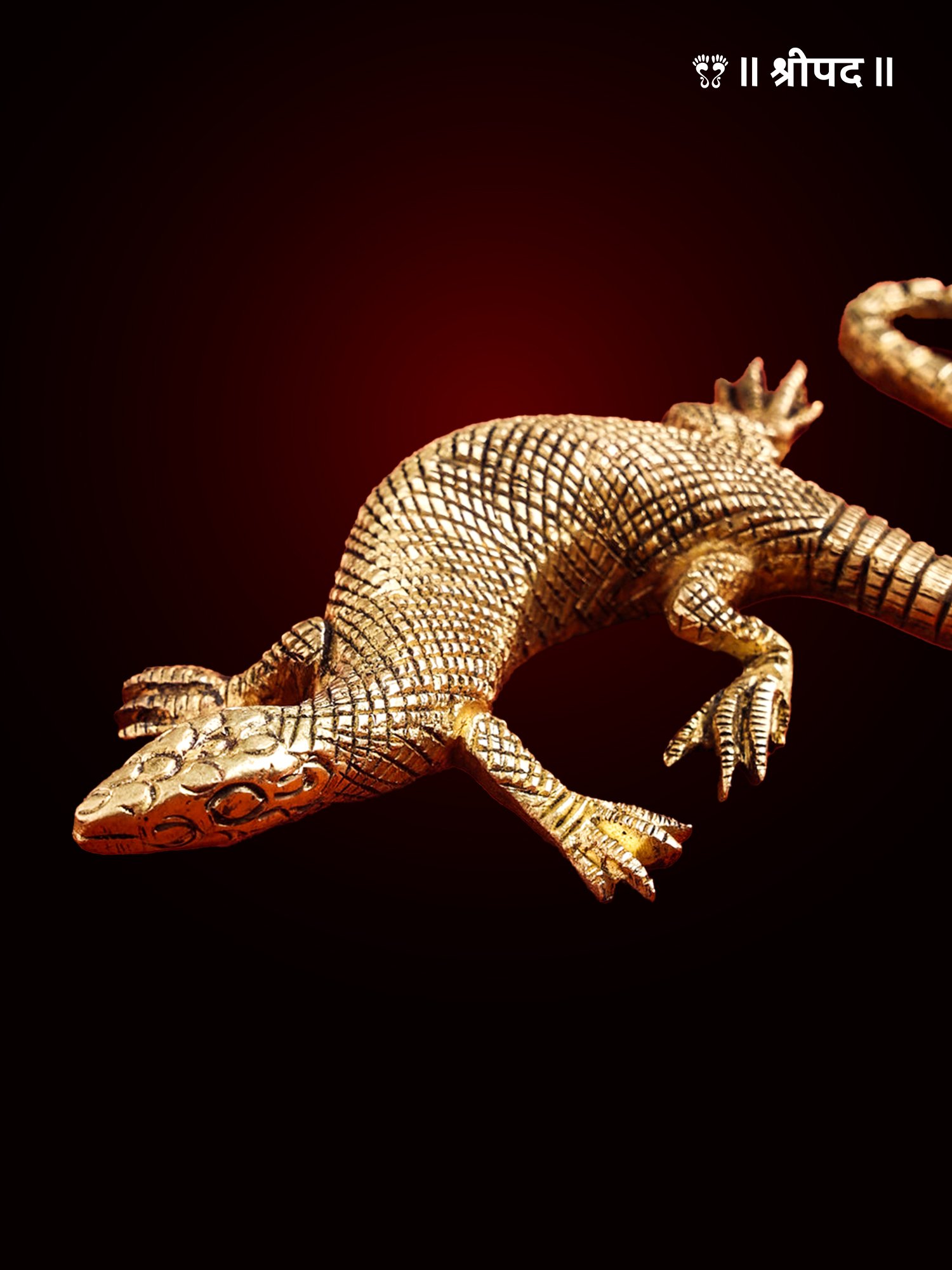 Add a touch of tradition and charm to your space with this beautifully crafted 5-inch brass decorative lizard. Symbolizing agility, protection, and good fortune in many Indian cultures, this piece is not just décor—it’s a statement. Handmade by skilled artisans, its intricate detailing and antique brass finish make it a striking addition to any wall, shelf, or tabletop. Perfect for your living room, entrance, or office, it effortlessly blends ethnic elegance with a touch of quirk. Brass, known for its durability and spiritual significance, adds a warm, rich tone to interiors while bringing positive energy. Ideal as a housewarming gift or as part of your festive décor, this lizard embodies the essence of Indian craftsmanship and culture. Easy to maintain and long-lasting, it serves as a beautiful reminder of heritage and style. Let your home speak of stories and symbols with this unique showcase piece.