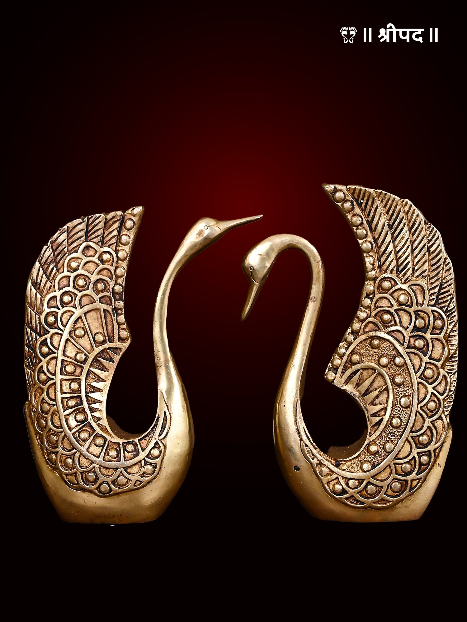 The Decorative Loving Swan Pair set is a charming piece of art, meticulously crafted from high-quality brass. Measuring 9 inches in height, this set captures the graceful elegance and eternal bond of two swans in a loving pose, symbolising harmony and devotion. With its intricate detailing and smooth antique finish, the swan pair exudes a sense of regal beauty, making it a delightful addition to any home décor setup. This decorative item is often used in Indian households as a symbol of love and unity, perfect for enhancing the ambience of living rooms, bedrooms, or even pooja rooms. It also serves as a thoughtful gift for weddings, anniversaries, or housewarmings, reflecting warmth and affection. The durability of brass ensures that this piece remains timeless, while its artistic appeal brings a touch of traditional Indian craftsmanship into modern spaces. Ideal for those who appreciate both elegance and cultural richness in décor.