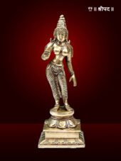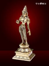 The 9″ Devi Uma (Goddess Sivagami) Brass Statue is a beautifully crafted depiction of Goddess Uma, also revered as Sivagami, the divine consort of Lord Shiva. This exquisite statue captures the goddess in a serene and graceful seated posture, symbolising her nurturing and powerful essence as the embodiment of love, devotion, and strength. Made from high-quality brass, the statue showcases intricate detailing in her attire, jewelry, and divine features, reflecting the impeccable craftsmanship of skilled artisans.