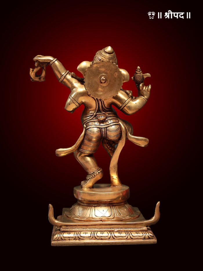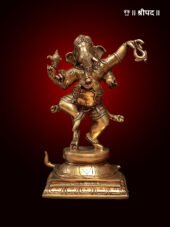 The 12-inch Dhanvantri Dance Ganesha in brass is a unique and captivating representation of Lord Ganesha, combining the essence of healing and joy through dance. Lord Ganesha, revered as the remover of obstacles and harbinger of wisdom, is depicted in an expressive dance posture, symbolizing the harmony of movement and energy. The term “Dhanvantri” signifies health and well-being, making this idol a powerful symbol of vitality and spiritual balance.
