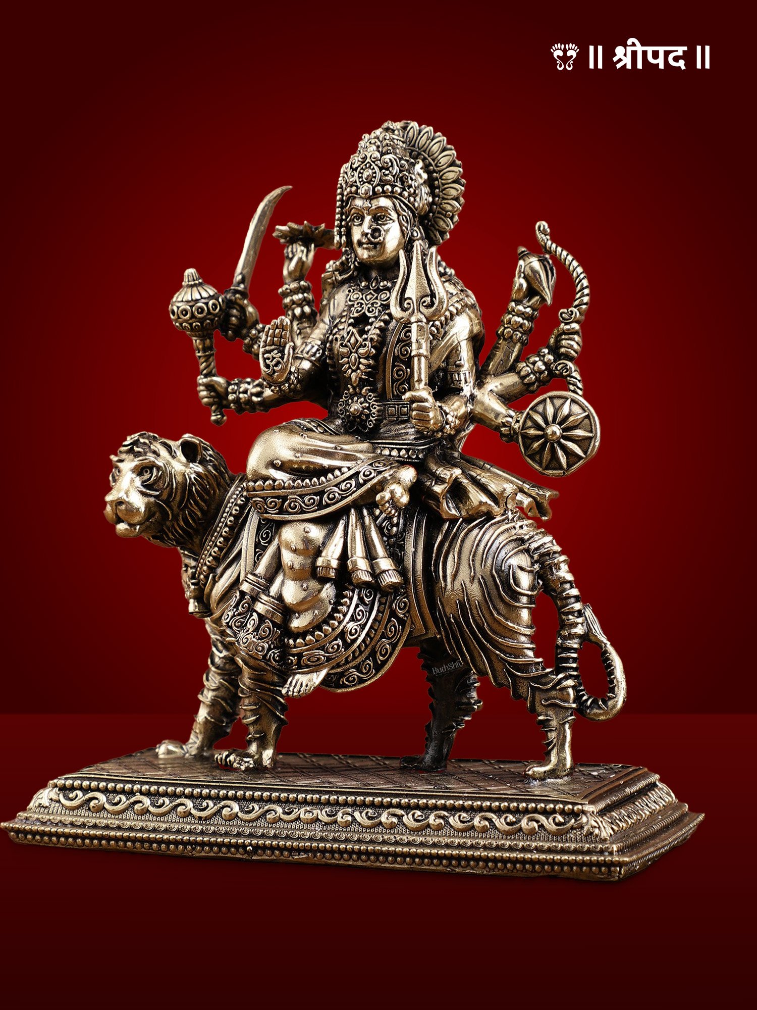 Durga Mata On Tiger, Ambe Maa | 7-Inch | Brass