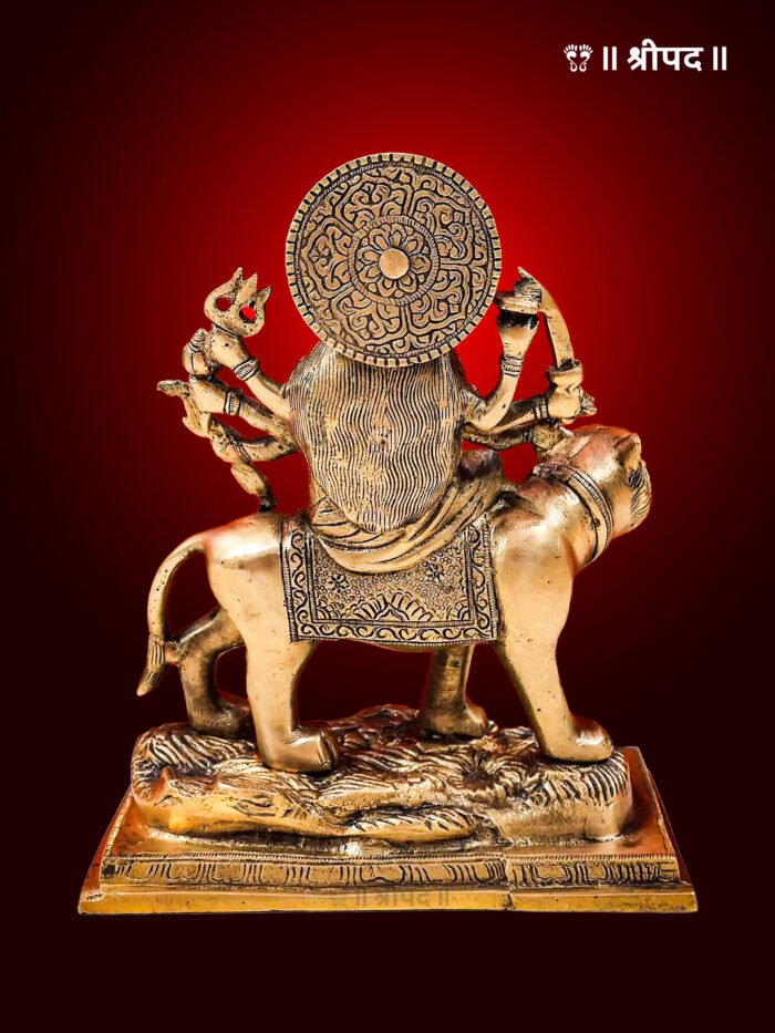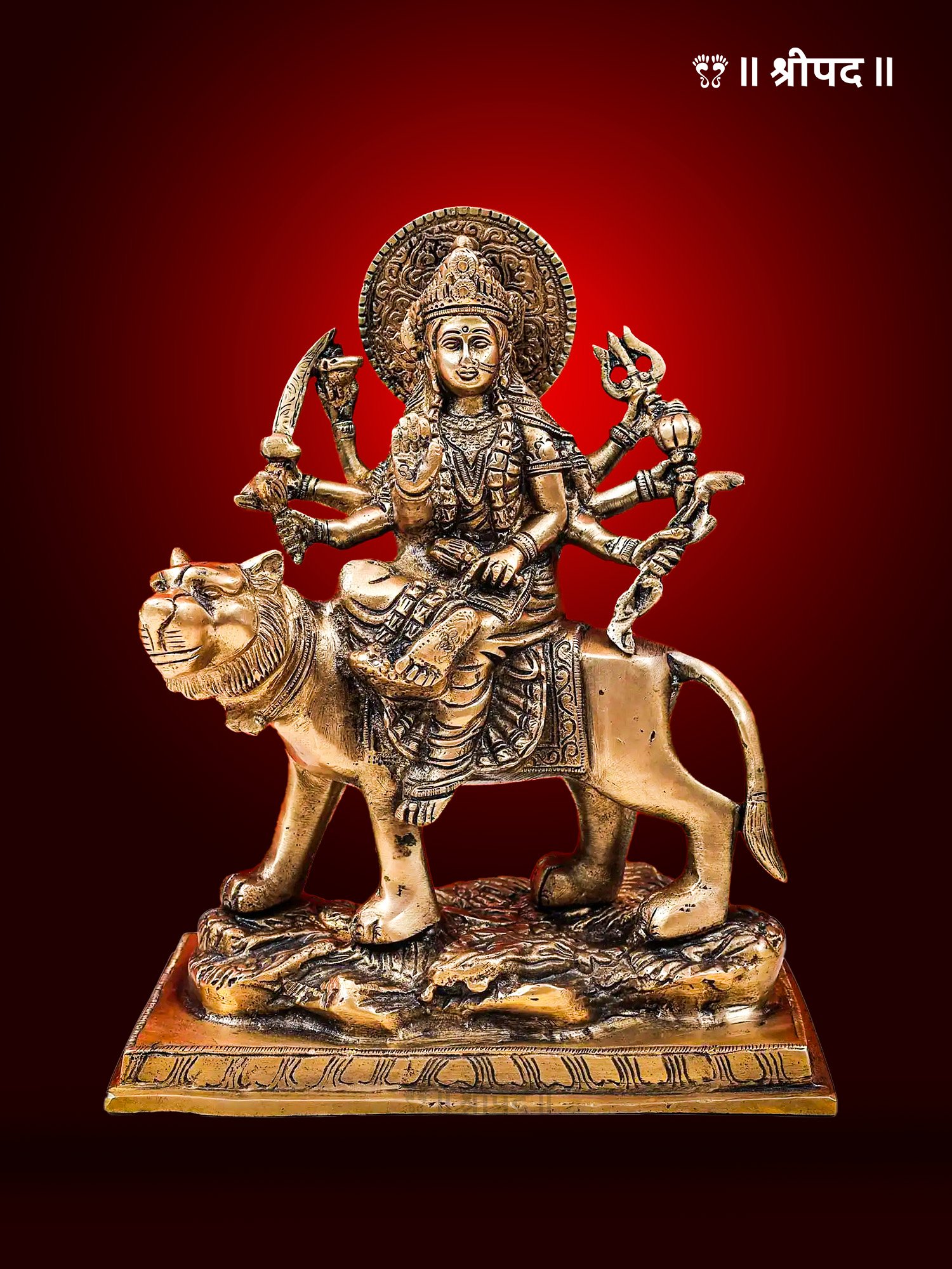 Eight-Armed Durga on Sawari | 9-Inch | Brass
