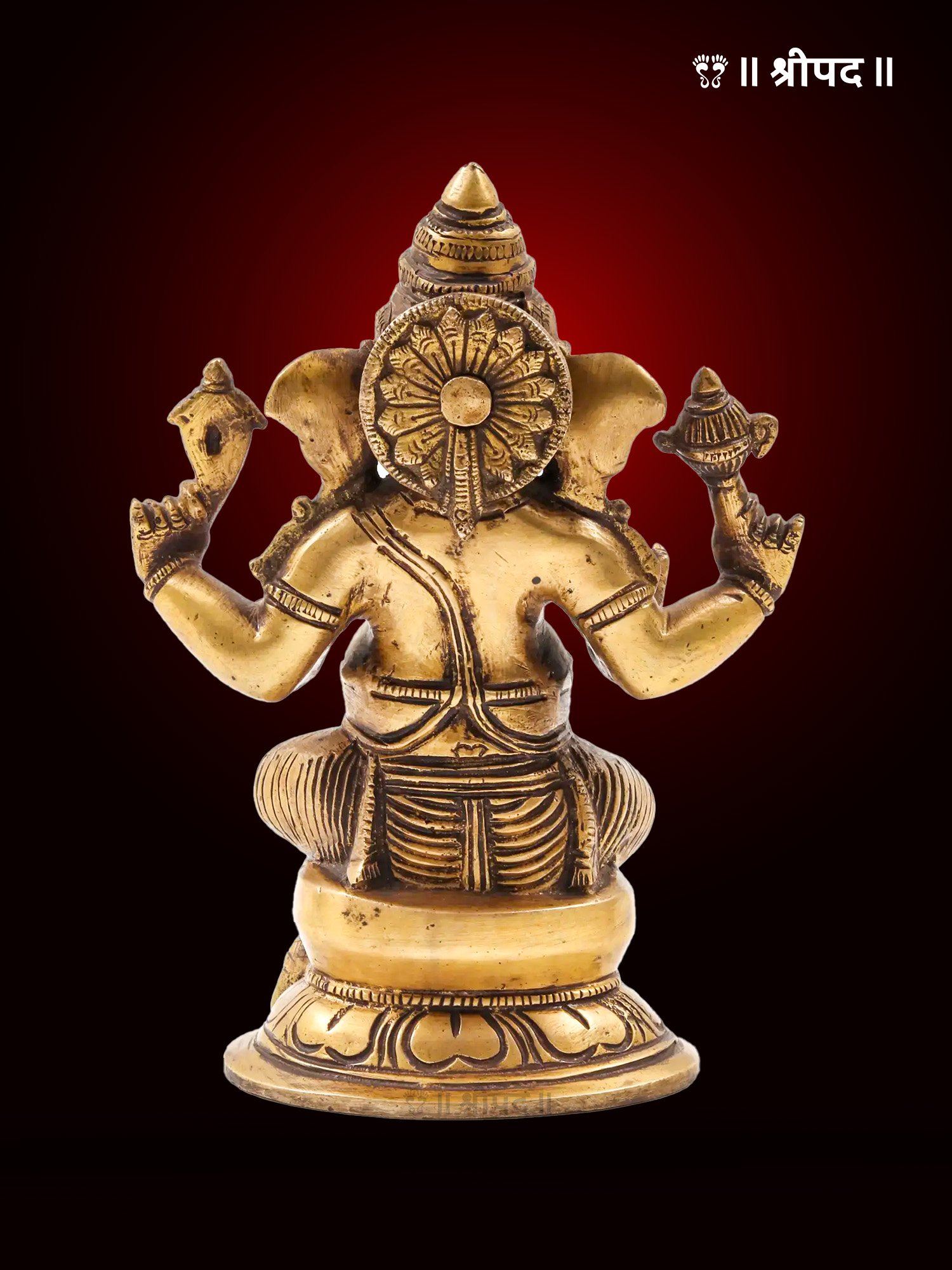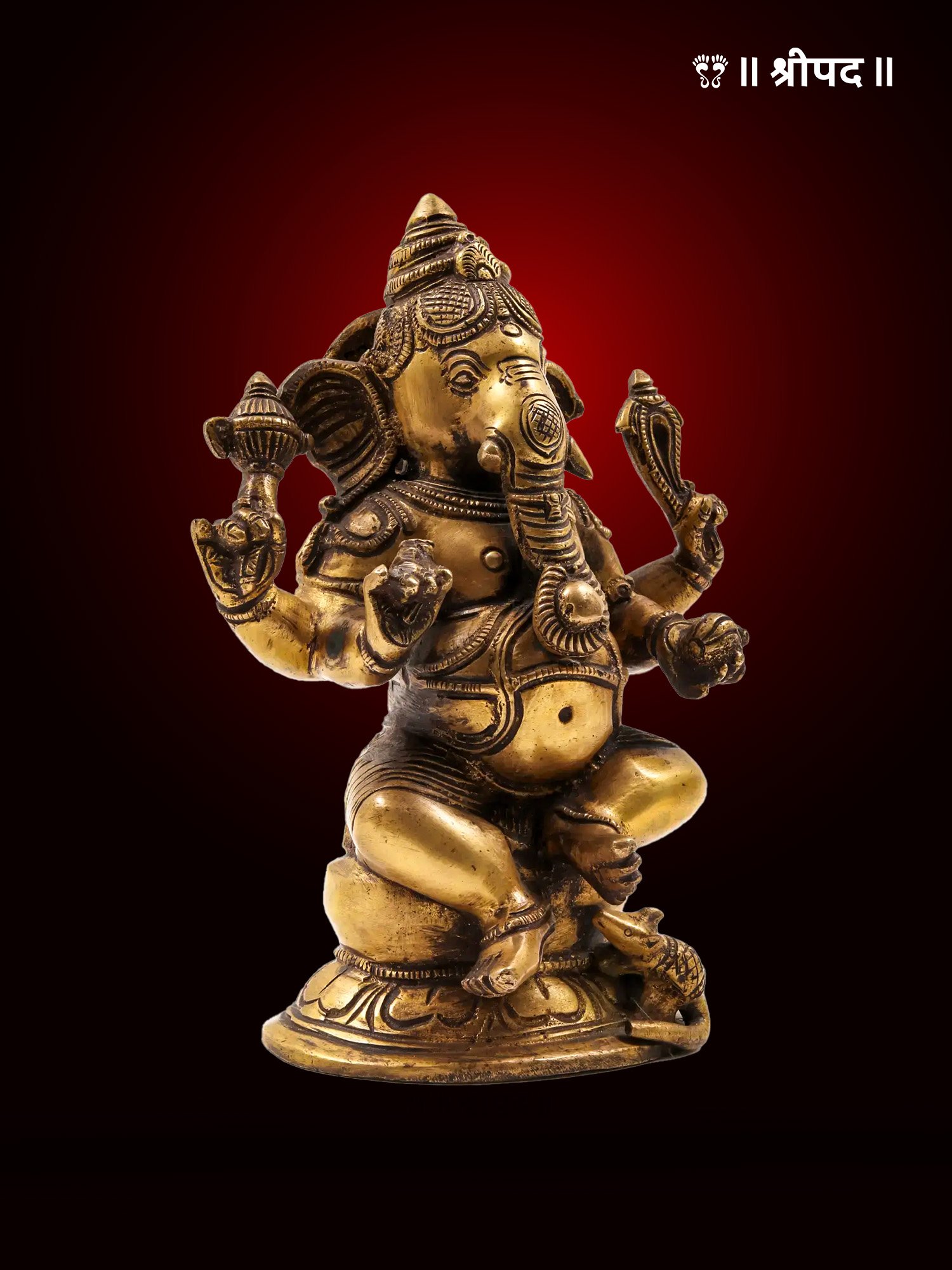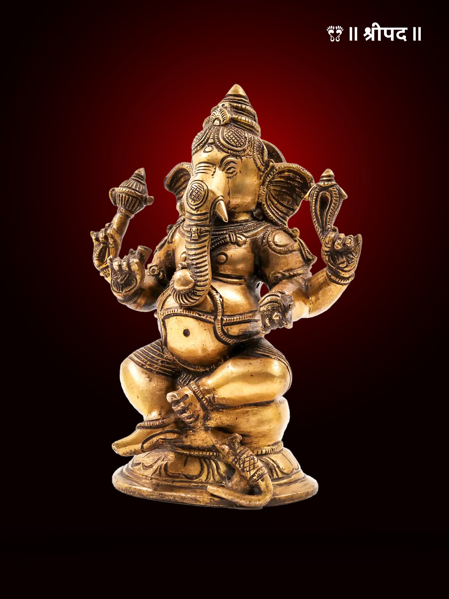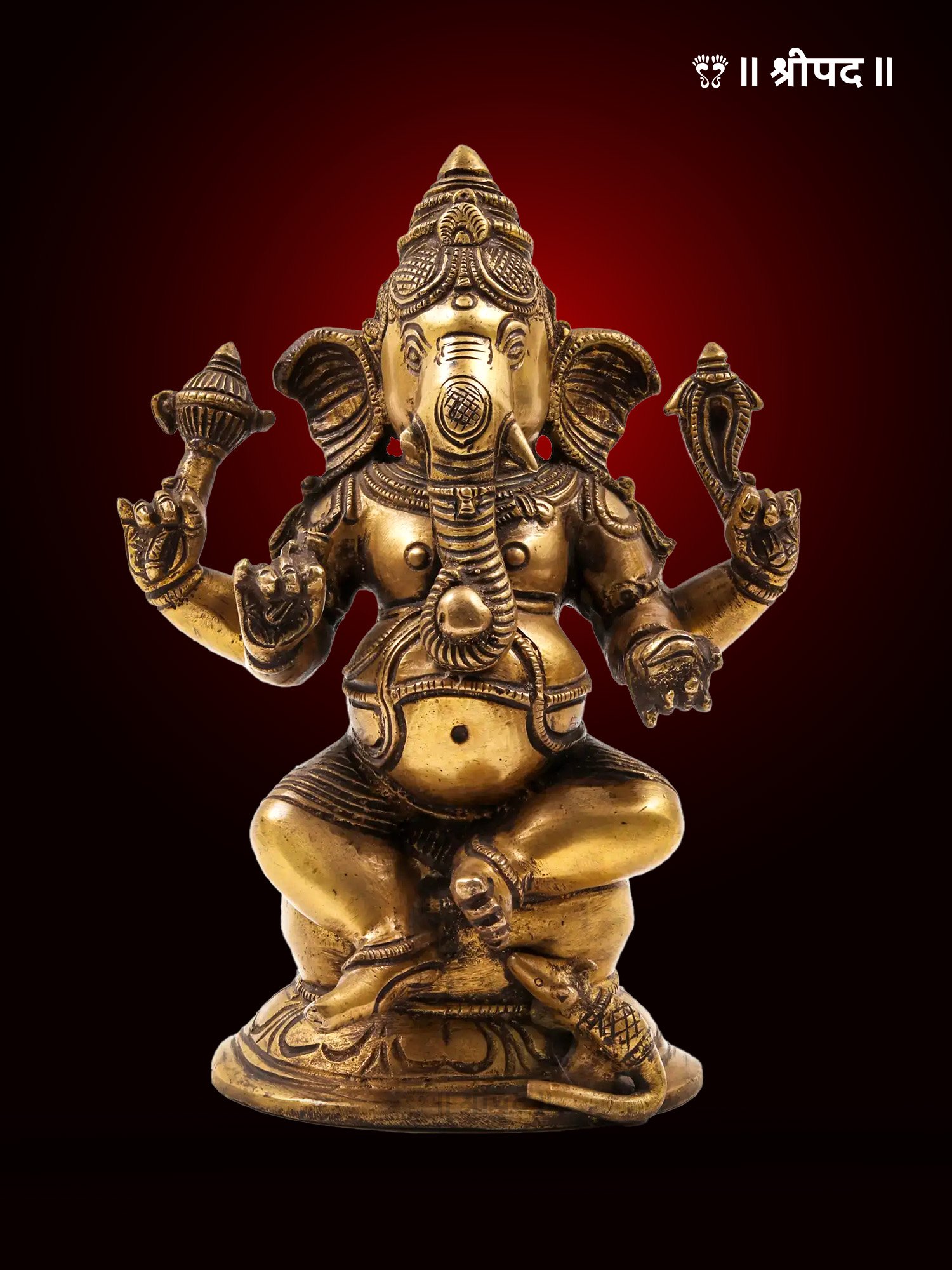 Four Hands Seated Ganesha (Gajanana) | 8-Inch | Brass