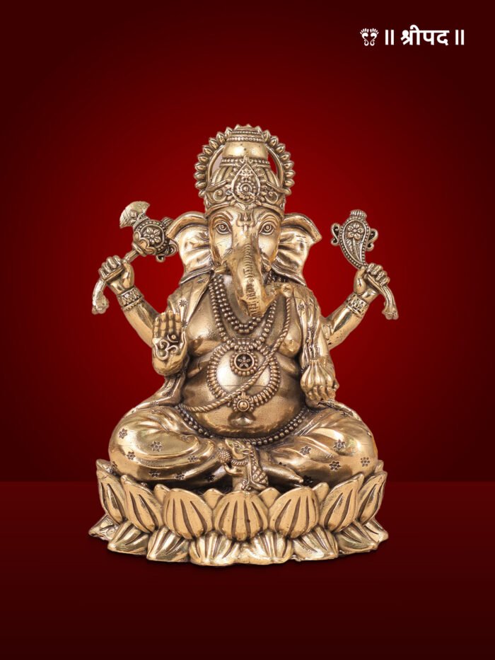 The polished brass finish enhances the idol’s beauty, making it a perfect blend of spirituality and elegance. Ideal for home temples, workspaces, or as a thoughtful gift during occasions like Ganesh Chaturthi, weddings, or housewarmings, this idol is a timeless piece that brings blessings and positivity to any space.