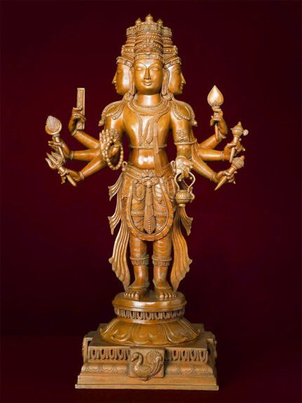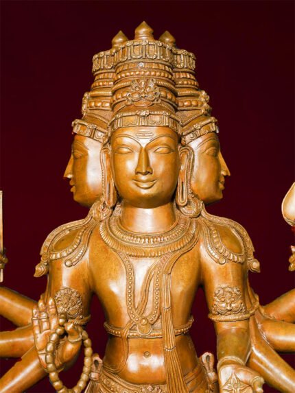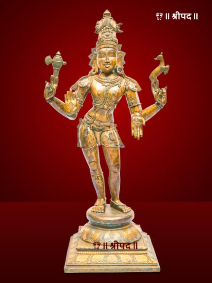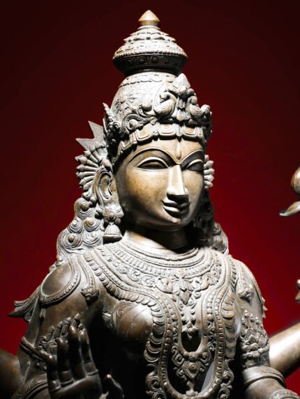 Ganesha’s dance is a divine expression of cosmic rhythm, representing the eternal cycle of creation, preservation, and destruction. The intricate detailing in his trunk, ears, and attire showcases the sculptor’s mastery in bronze work. This statue serves as both a spiritual symbol and a piece of aesthetic brilliance.