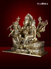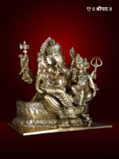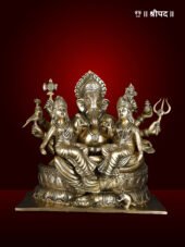 The 13″ Detailed Ganesha Brass Statue with Riddhi Siddhi Seated on Lotus Flower is a beautifully crafted and spiritually significant representation of Lord Ganesha, the revered remover of obstacles and bestower of wisdom and prosperity. In this exquisite statue, Lord Ganesha is depicted seated on a lotus flower, symbolising purity, spiritual growth, and divine beauty. The lotus pedestal represents the blossoming of wisdom and the removal of impurities from the mind and soul.