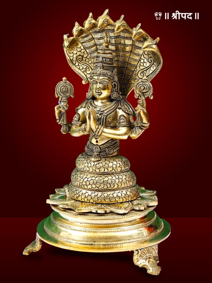 The 10″ Great Sage Patanjali Brass Idol is a stunning and meaningful tribute to the revered sage, considered the father of yoga and the author of the Yoga Sutras. This handmade brass statue captures the sage’s divine persona with intricate craftsmanship that reflects his wisdom and spiritual stature. Sage Patanjali is depicted in his iconic form, half-human and half-serpent, symbolising the union of the physical and spiritual realms. The serene expression on his face exudes tranquility and enlightenment, embodying the essence of yoga and self-realisation.