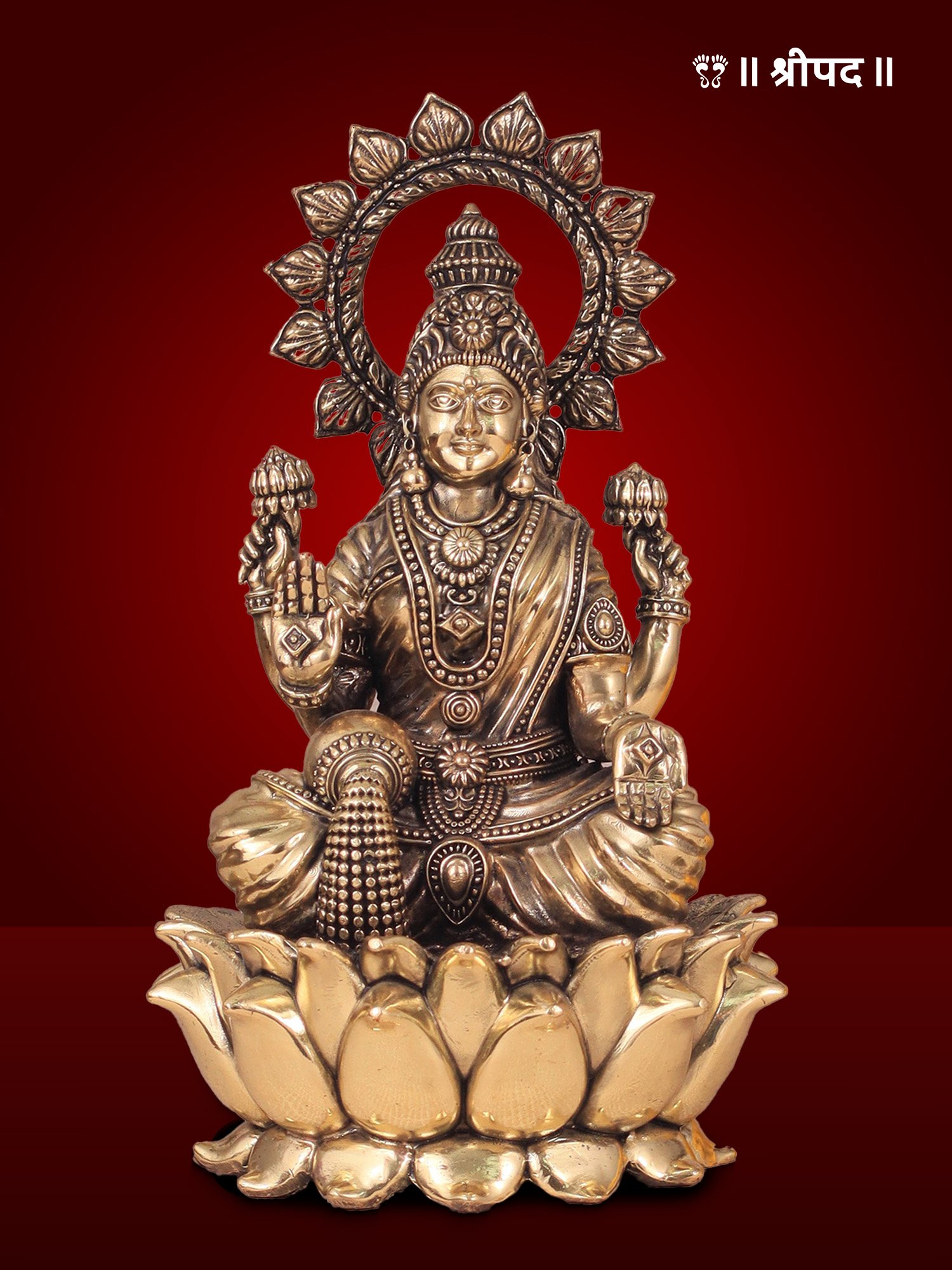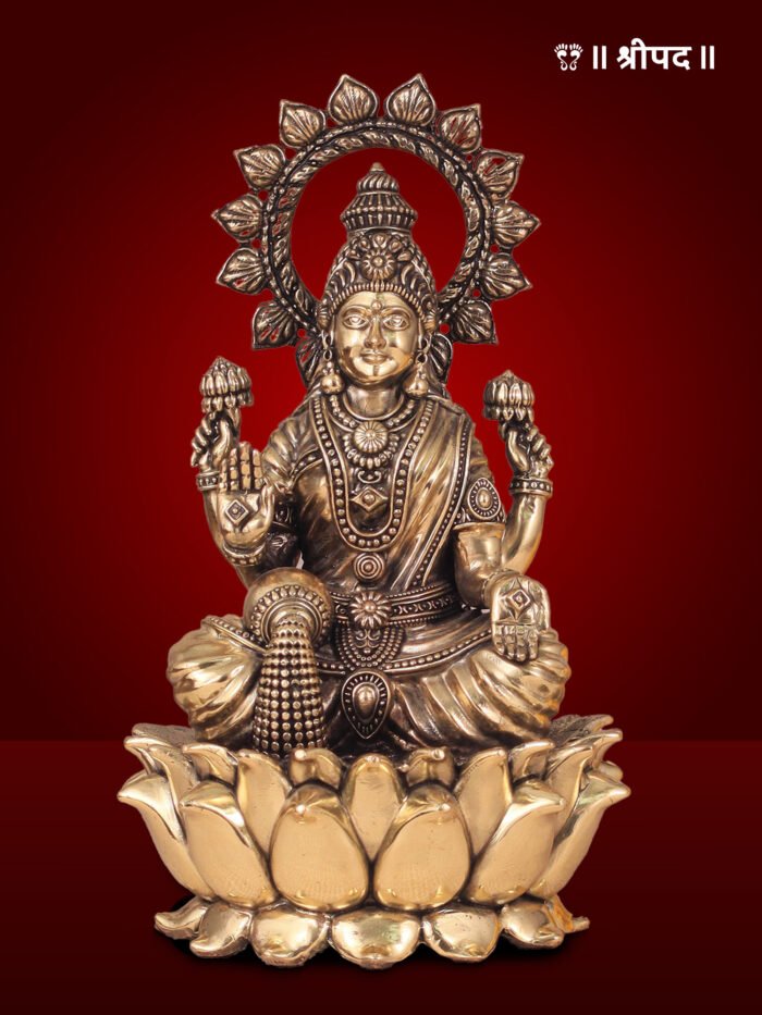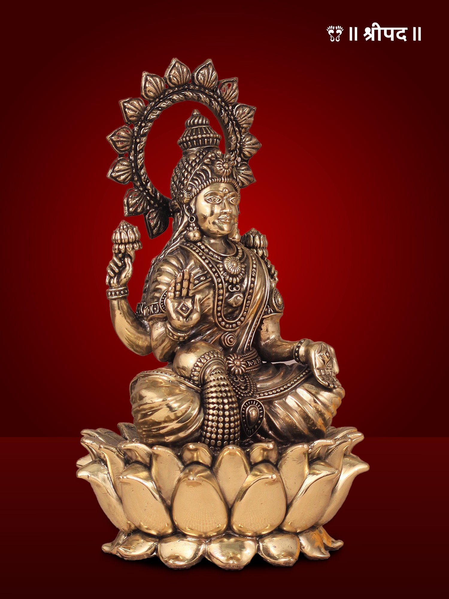 Goddes Lakshmi Idol with Detailed Carving | 8-Inch | Brass