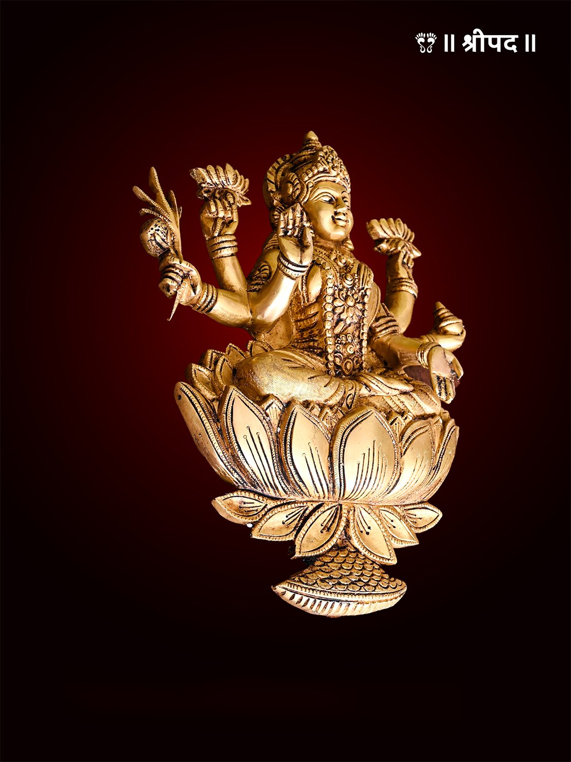 Lakshmi Devi, the consort of Lord Vishnu, is revered as the Goddess of Fortune. With her four arms, she bestows blessings upon devotees, signifying dharma (righteousness), artha (prosperity), kama (desires), and moksha (liberation). The intricate detailing on this wall hanging enhances its aesthetic and spiritual appeal, making it perfect for homes, temples, or offices.