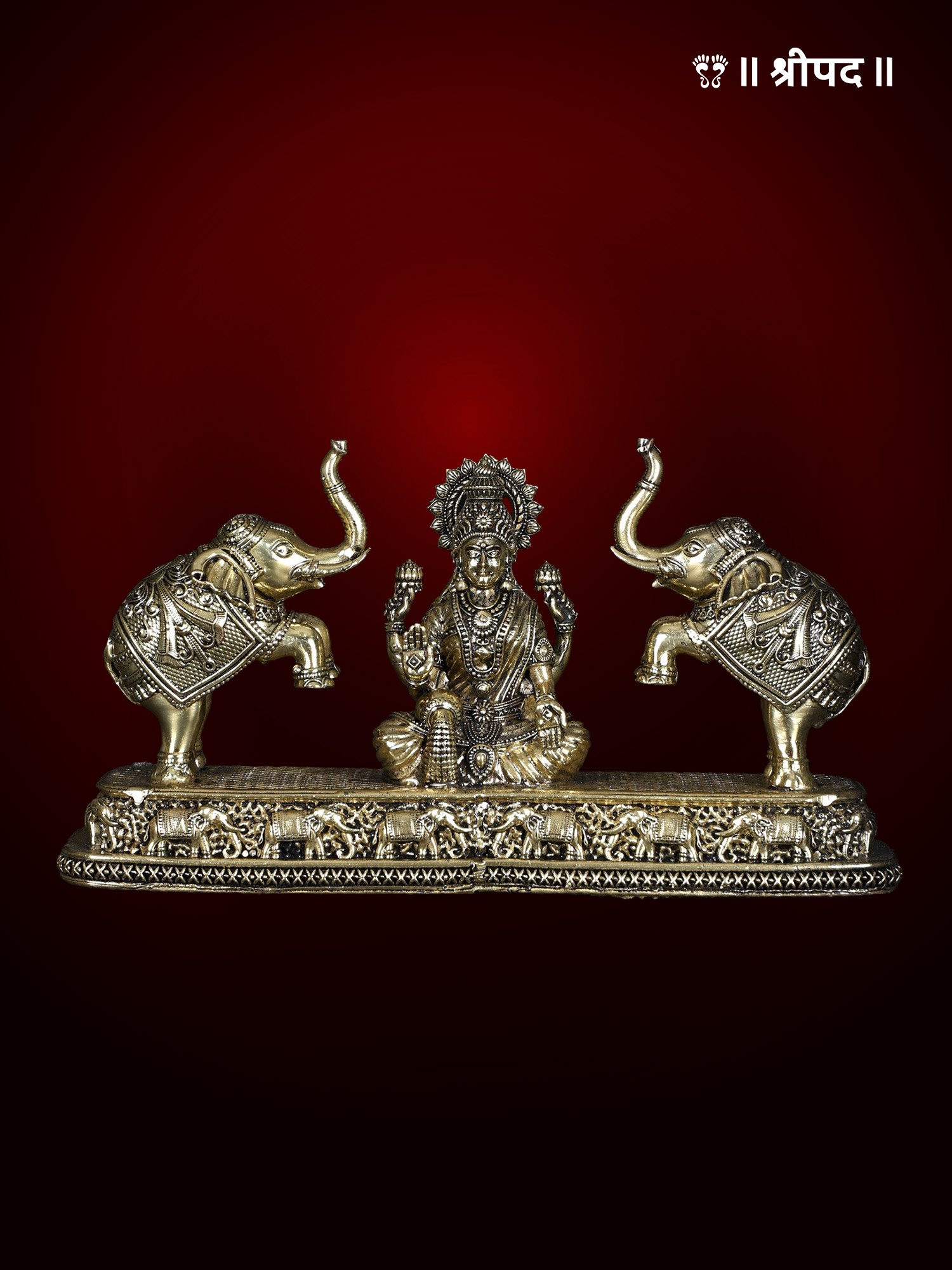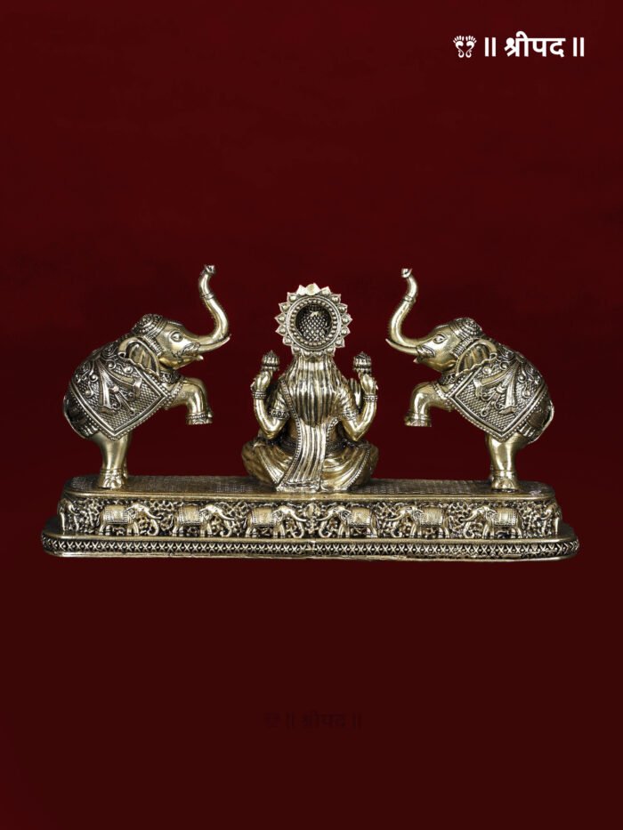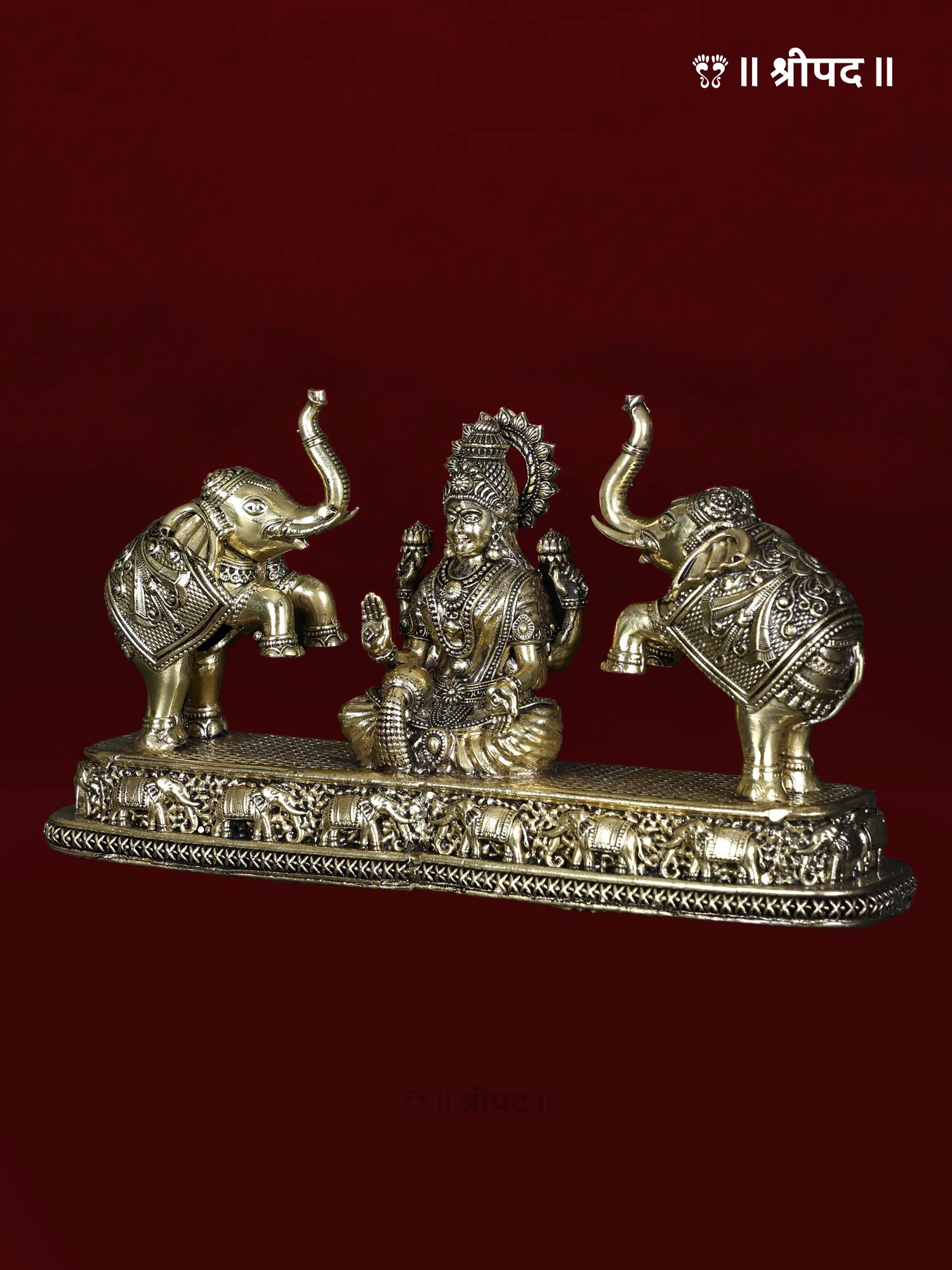 Goddess Lakshmi with 2 Gaja | 4-Inch | Brass