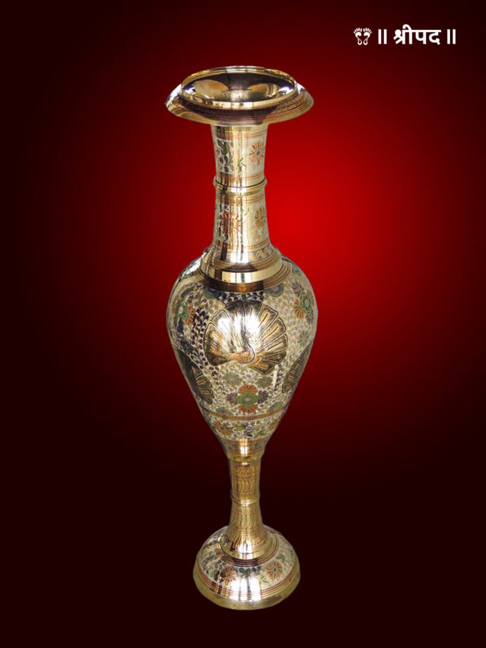 A 35-inch brass flower pot or vase is an elegant addition to any home or garden, blending traditional craftsmanship with aesthetic charm. In Indian homes, brass holds immense significance due to its spiritual and Vastu benefits. According to Vastu Shastra, placing a brass vase in the north or east direction attracts positive energy, prosperity, and harmony. The golden hue of brass symbolizes wealth and good fortune, making it ideal for enhancing financial stability.