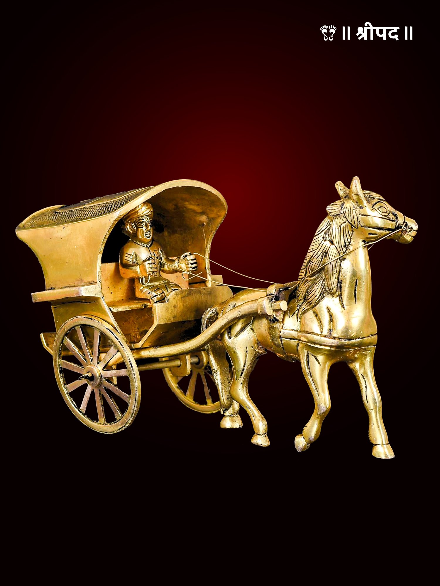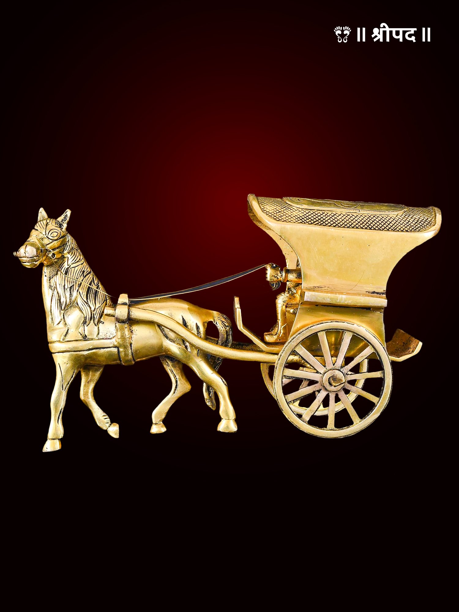 Whether placed on a tabletop, shelf, or in a showcase, this masterpiece instantly elevates the ambiance with its intricate design and timeless appeal. It is ideal for festive décor, housewarming gifts, or cultural showcases. The gleaming brass not only reflects traditional craftsmanship but also brings an auspicious aura to any space. A blend of beauty and cultural significance, this horse cart chariot is more than a decoration—it’s a celebration of India’s rich legacy and a tribute to divine journeys.