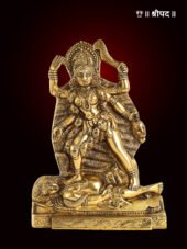 The 10-inch brass idol of Kaali Maa, in an enraged form, is a striking representation of the goddess’s powerful and wrathful aspect. Known as the fierce destroyer of evil and ignorance, Kaali is depicted in a moment of intense energy, with her wild, disheveled hair and fierce expression. Her posture, filled with strength and dominance, reflects her unyielding resolve to destroy negativity and maintain cosmic order.