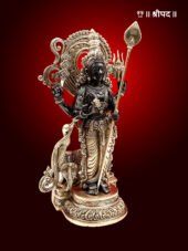 The statue showcases exceptional craftsmanship, with intricate detailing on Karttikeya’s ornaments, crown, and flowing robes, reflecting traditional artistry. His serene yet commanding expression radiates divine strength and wisdom, inspiring devotion and confidence in his devotees. The fine brass finish enhances the statue’s elegance and durability.