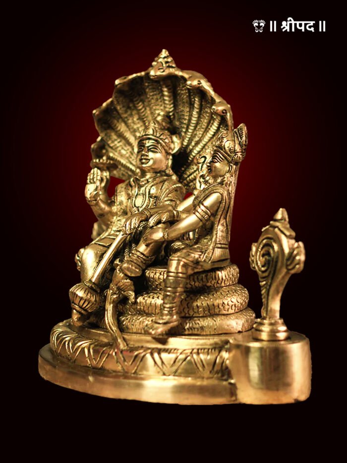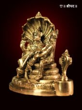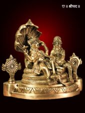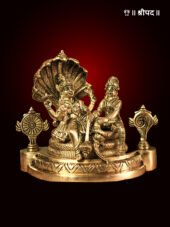 The idol captures every fine detail—from Lord Vishnu’s Shankha, Chakra, Gada, and Padma to Maa Lakshmi’s Abhaya Mudra, blessing devotees with fortune and well-being. The brass craftsmanship adds an antique charm, making it ideal for puja altars, homes, and temples.
