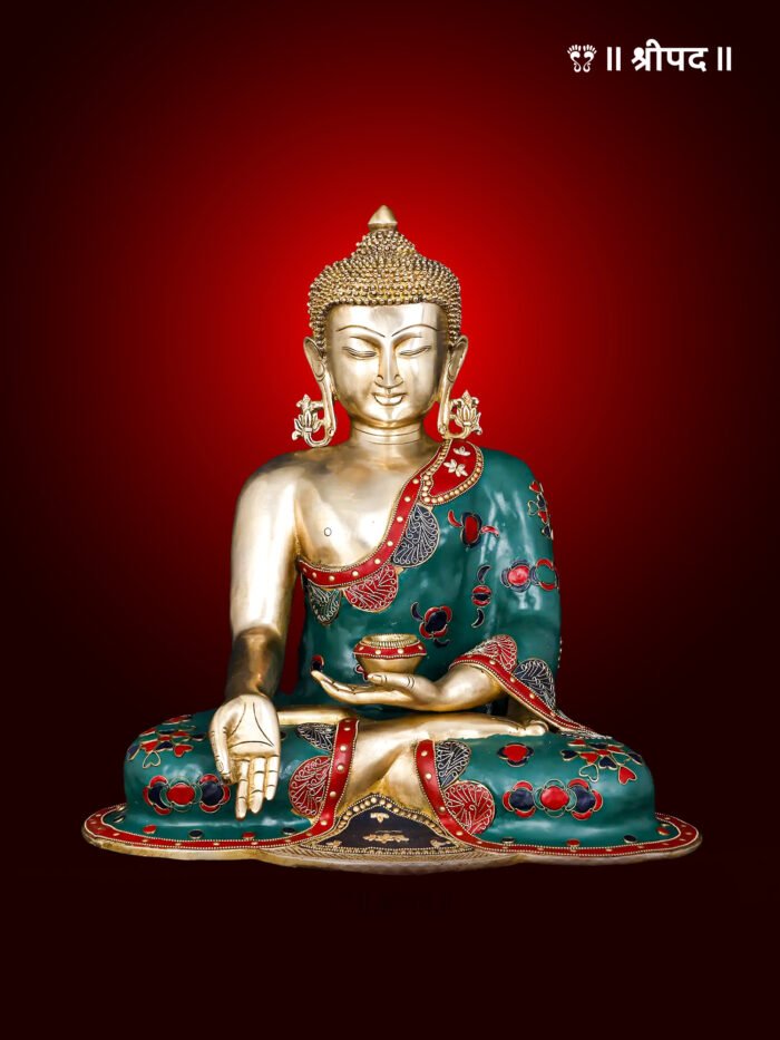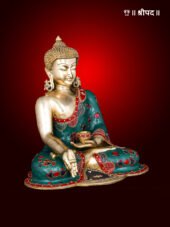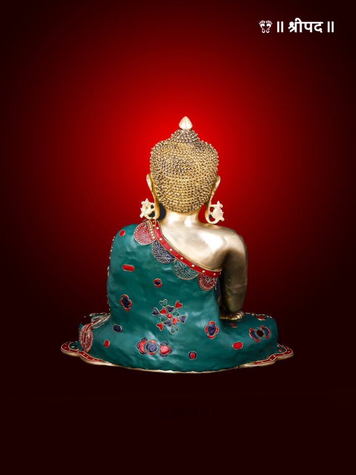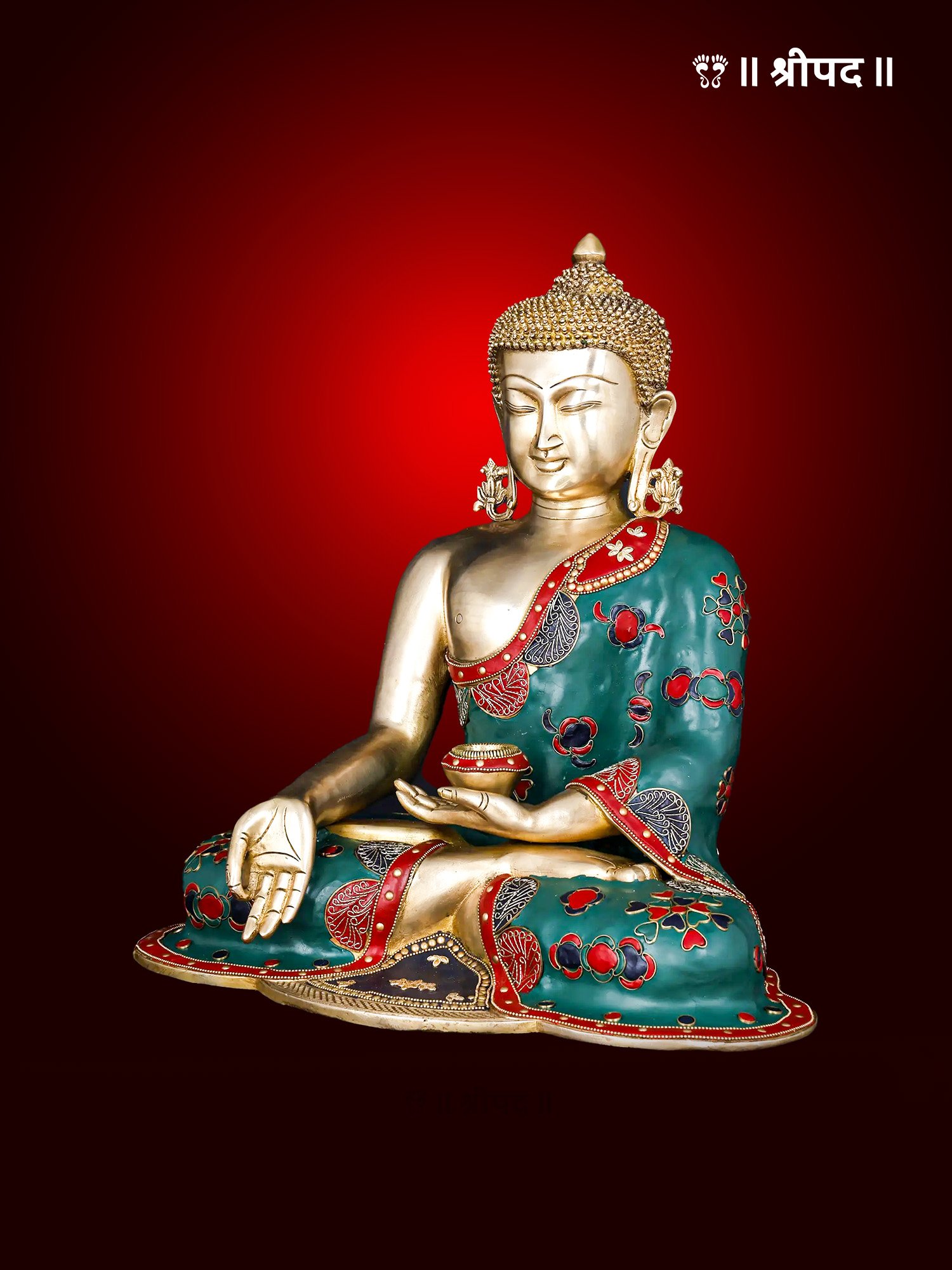 The 17-inch brass statue of Lord Buddha seated in Varada Mudra is a serene and spiritually powerful representation of the enlightened one. In this divine form, Lord Buddha is depicted in a seated posture with one hand raised in the Varada Mudra, the gesture of compassion, charity, and the granting of blessings. This mudra symbolizes his readiness to offer peace, wisdom, and solace to all beings, demonstrating his boundless compassion for humanity.