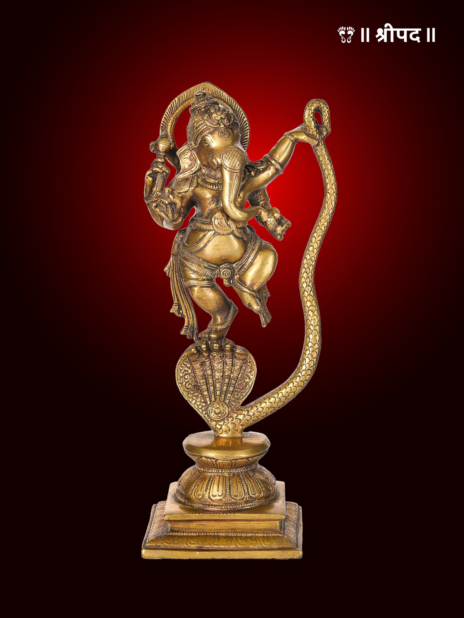 Lord Ganesha Dancing on Five-Hooded Serpent | 11-Inch | Brass