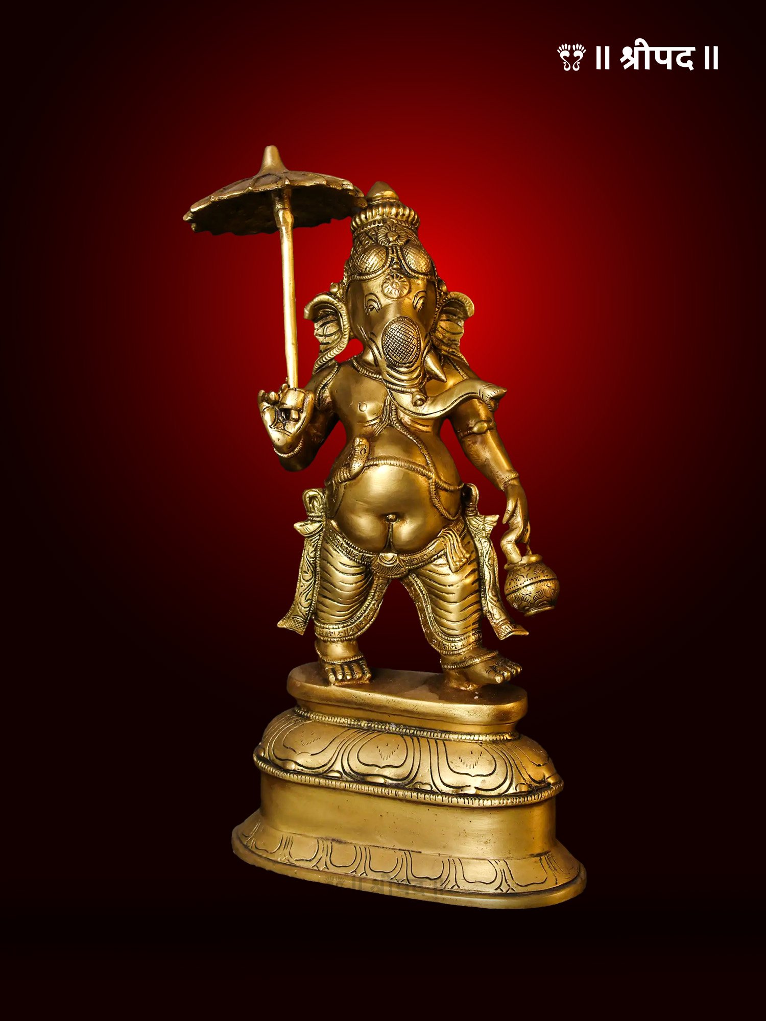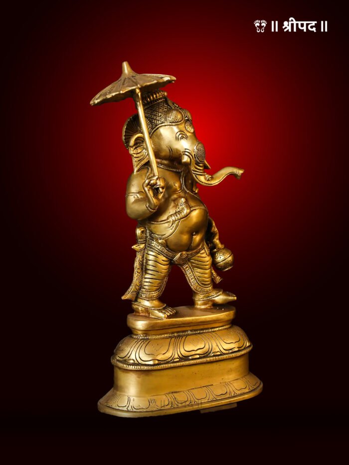 Lord Ganesha Idol with Umbrella | 14-Inch | Brass