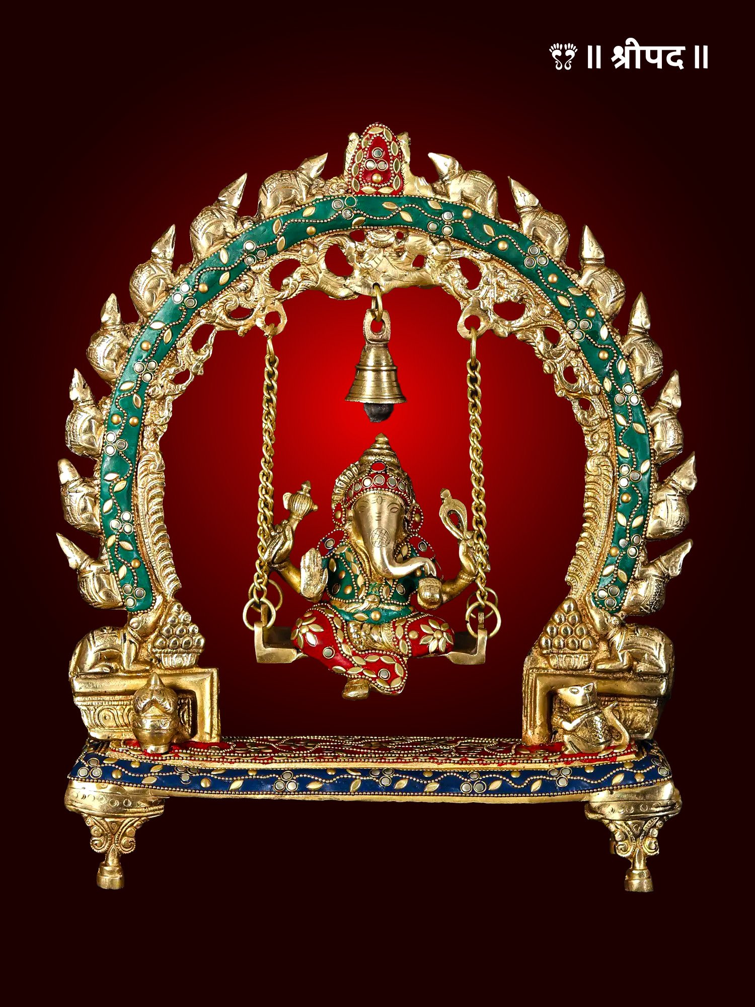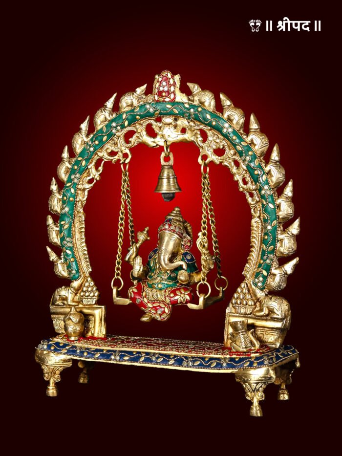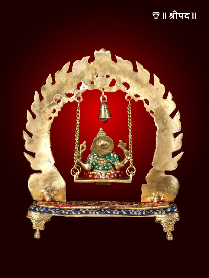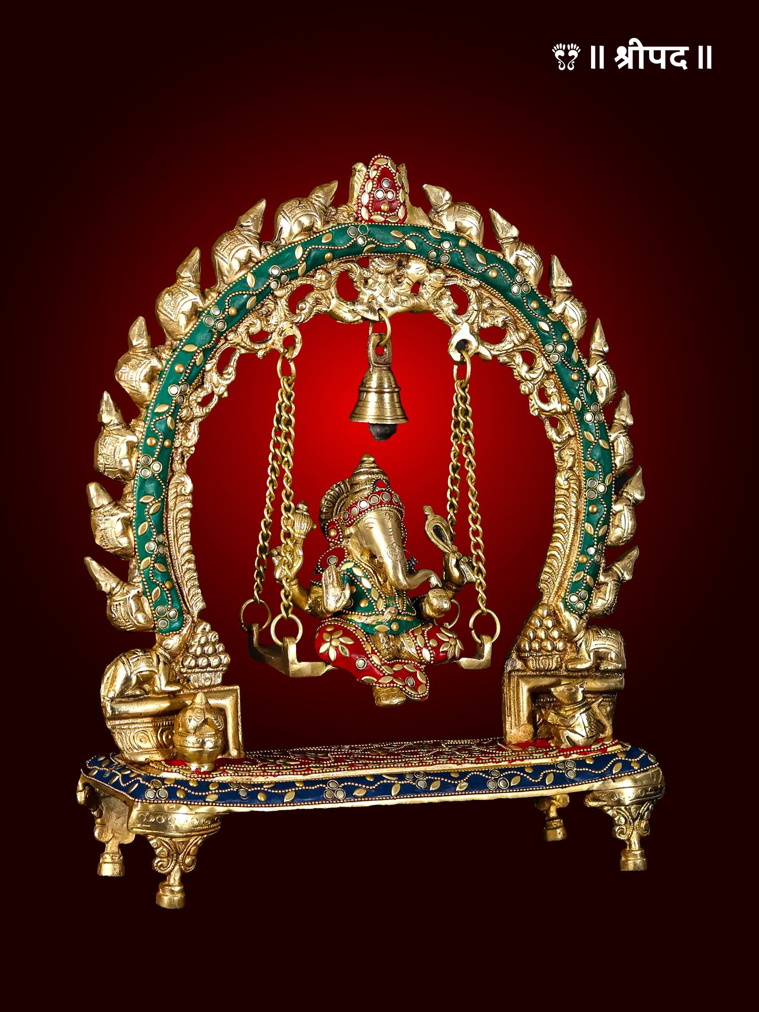 Lord Ganesha on Swing with Inlay Work | 15-Inch | Brass