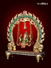 The 15-inch Lord Ganesha on a swing with intricate inlay work, crafted in fine brass, is a stunning blend of artistry and spiritual symbolism. This beautifully designed statue depicts Lord Ganesha in a joyful, relaxed pose, seated on a swing, with exquisite detailing that brings out the elegance and grace of the deity. The swing’s frame is adorned with detailed inlay work, highlighting the craftsmanship and cultural richness of Indian artisans.