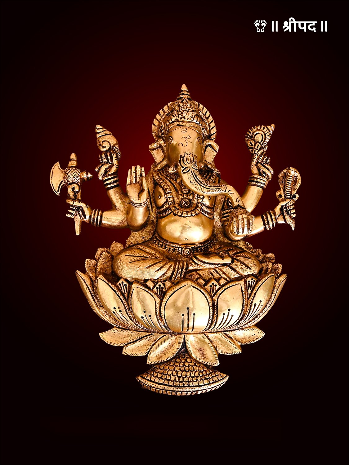 This exquisitely crafted Lord Ganesha Wall Hanging in brass is a symbol of wisdom, prosperity, and auspicious beginnings. Measuring 13 inches, this divine masterpiece is designed to bring blessings and positive energy to your home or office.
