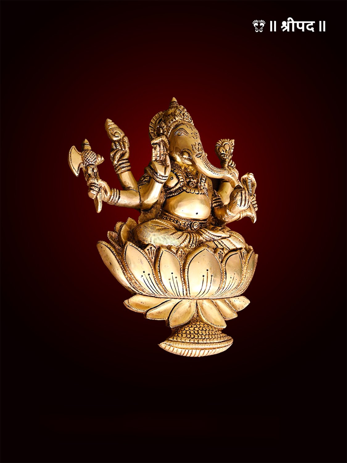 Ganesha, the remover of obstacles, is beautifully depicted in intricate detail, reflecting traditional Indian craftsmanship. The antique brass finish enhances its timeless appeal, making it a perfect addition to your spiritual décor. Whether placed at the entrance, puja room, or living space, this sacred idol invokes divine grace.