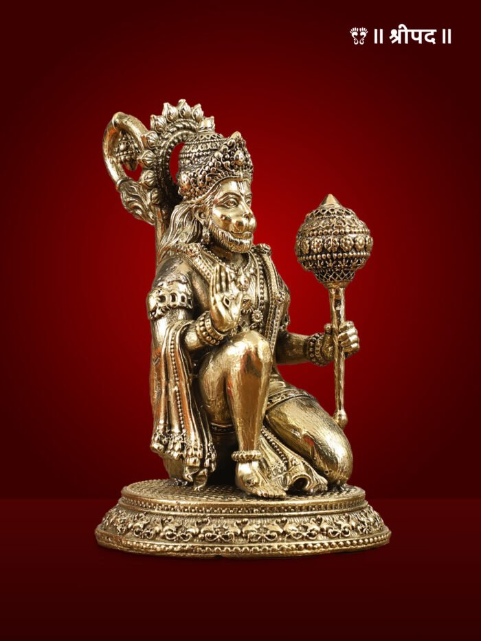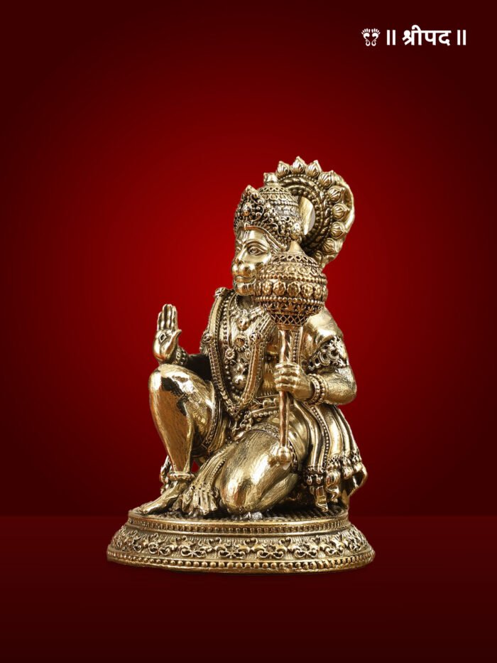 The statue also highlights his mace (gada) symbolizing power and selfless service, while his draped attire and sacred thread add to its traditional authenticity. The idol’s smooth golden finish exudes elegance and ensures long-lasting durability.