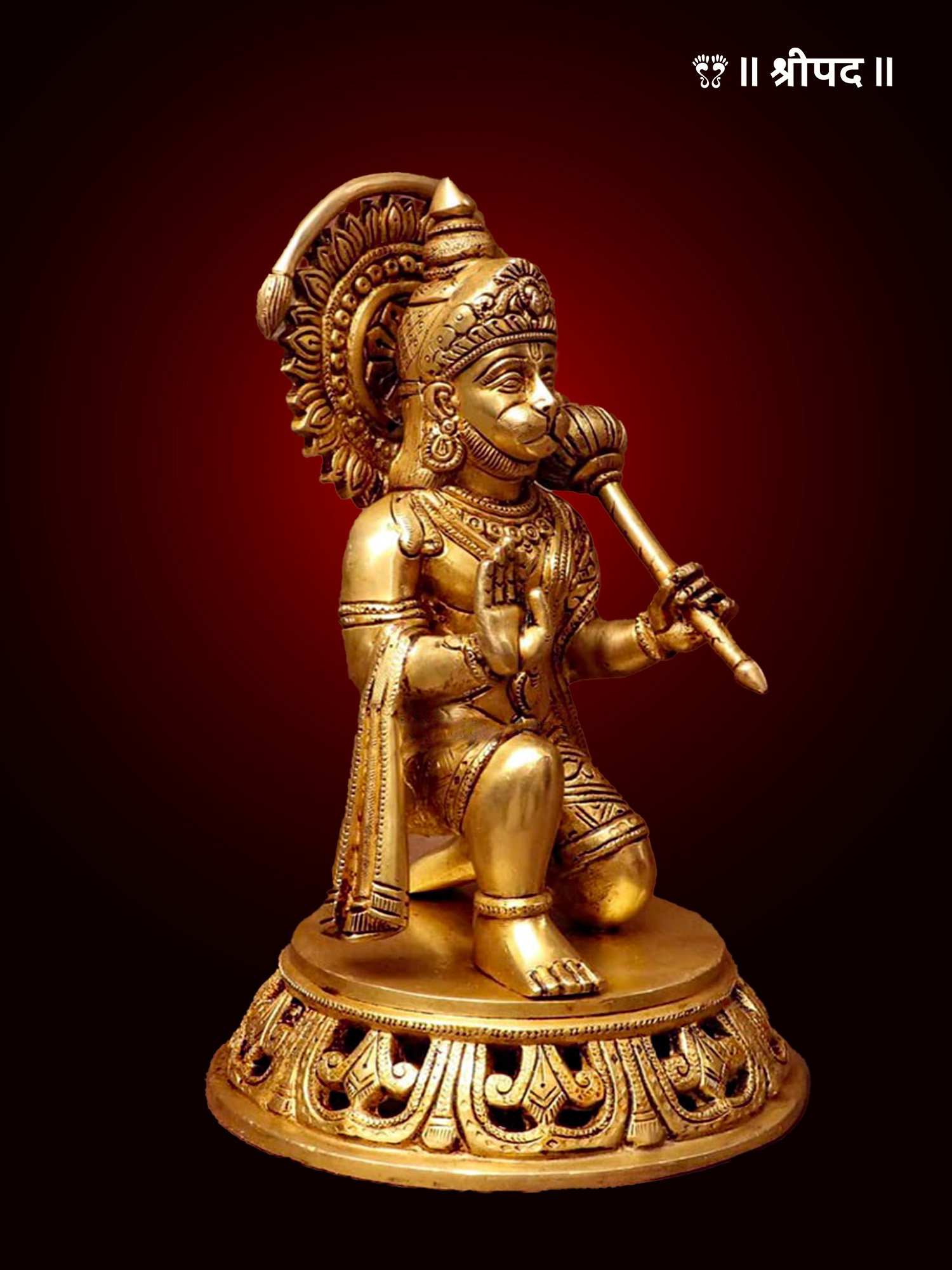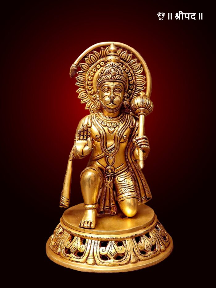Intricate craftsmanship highlights every detail, from the fine etchings on his ornaments and clothing to the serene expression on his face, reflecting the artisan’s dedication and mastery. The gleaming brass finish enhances its divine aura, ensuring it becomes a centerpiece of reverence in homes, temples, or sacred spaces. This statue serves not only as a spiritual symbol but also as a reminder of Lord Hanuman’s virtues, inspiring strength, devotion, and selfless service in the hearts of worshippers.