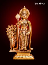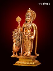The 16-inch brass idol of Lord Murugan, also known as Kartikeya, is a striking representation of divine valor and spiritual wisdom. Lord Murugan, revered as the deity of war and victory, stands tall and majestic, exuding an aura of confidence and tranquility. The idol beautifully captures his divine attributes, with the vel (spear) in his hand, symbolizing triumph over ignorance and the power of knowledge.