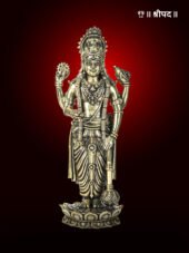 The superfine brass statue of Lord Vishnu standing gracefully on a lotus is a masterpiece of divine artistry and traditional craftsmanship. Depicting the preserver of the universe in his iconic stance, this statue exudes serenity, balance, and cosmic harmony. The intricate detailing of Lord Vishnu’s crown, ornaments, and draped attire reflects the exceptional skill of artisans, while the lotus pedestal symbolizes purity and spiritual enlightenment.