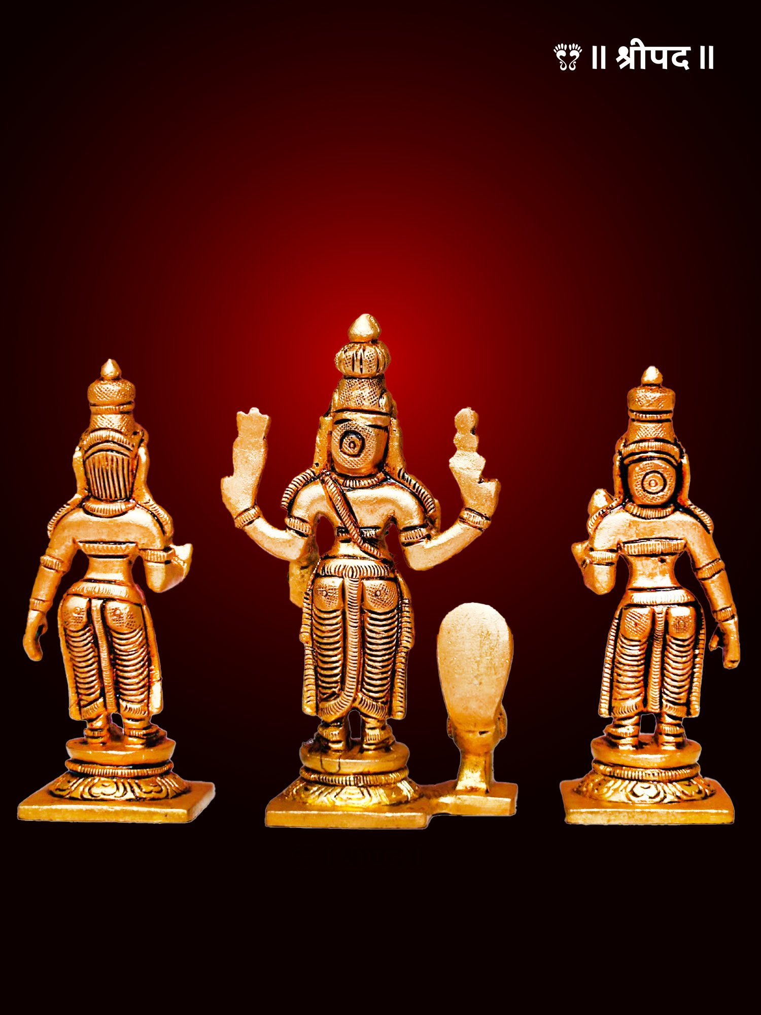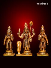 Crafted from durable brass, the idol’s polished finish enhances its aesthetic appeal while imbuing it with timeless charm. The intricately carved base provides stability and elegance, making it an ideal addition to personal altars, meditation spaces, or as a thoughtful gift. This miniature masterpiece emanates divinity, unity, and inspires profound reverence.