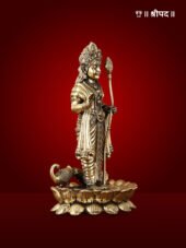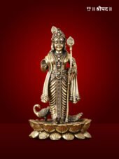 This 6-inch Pure Brass Superfine Murugan with Peacock Idol is a magnificent and intricate representation of Lord Murugan, the revered deity of courage, wisdom, and victory. Depicted with great attention to detail, Lord Murugan is shown riding a majestic peacock, his divine vehicle, symbolising beauty, grace, and strength. The idol captures the power and serenity of the deity, with Murugan holding his divine spear (Vel), which represents the destruction of evil and the protection of righteousness.