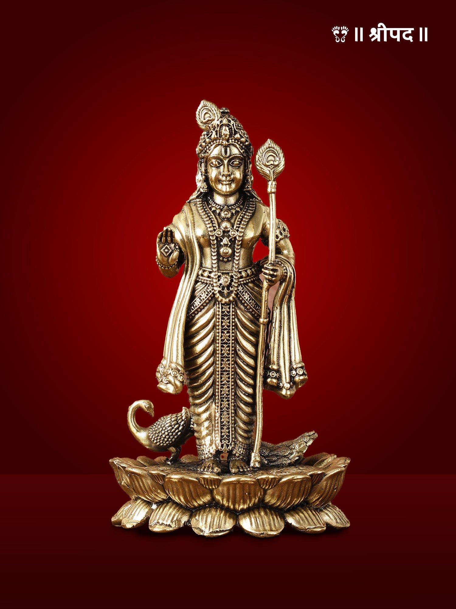 Murugan with Peacock | 6-Inch | Brass