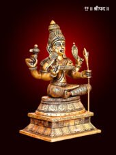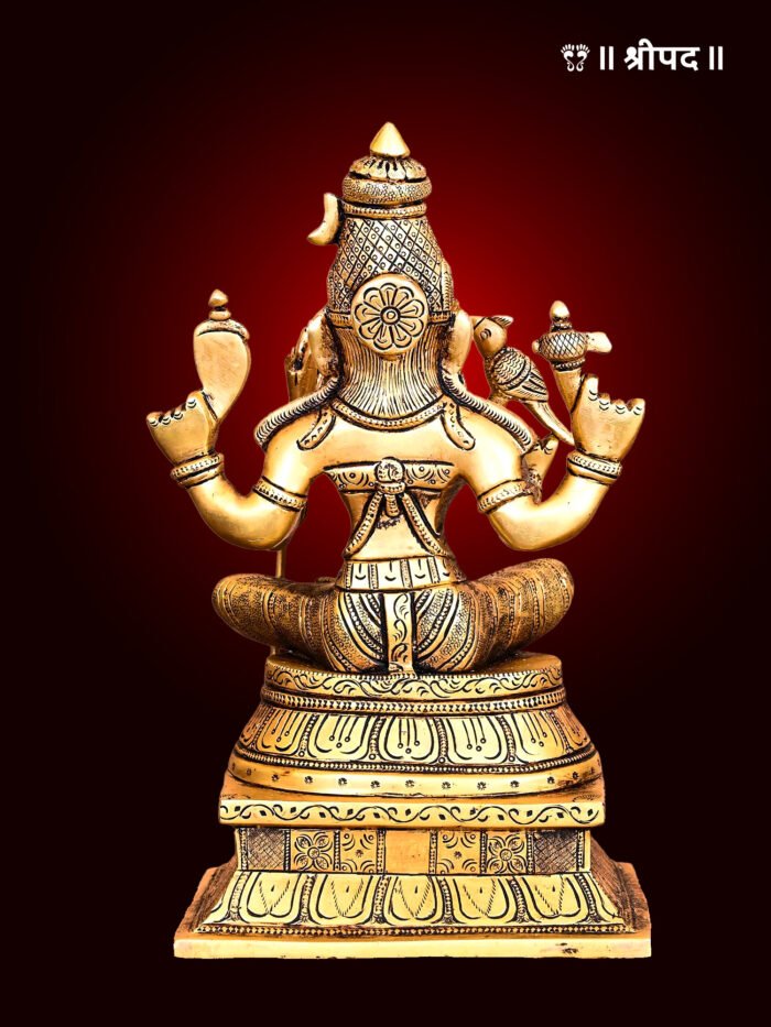 The Rajarajeshwari Devi Idol is a magnificent 12-inch brass murti, radiating divine grace and supreme energy. Crafted with intricate detailing, this idol embodies Devi Rajarajeshwari, the supreme goddess of the universe, seated in a meditative yet commanding posture.