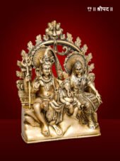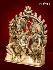 The 10″ Lord Shiva Family Seated on Kirtimukha Throne Brass Statue is a stunning and divine masterpiece that beautifully captures the essence of Lord Shiva, Goddess Parvati, and their sons, Lord Ganesha and Lord Kartikeya. Expertly crafted from high-quality brass, this statue showcases exceptional artistry with intricate detailing. Lord Shiva, with his iconic matted hair, crescent moon, and trident, is depicted in a serene and powerful posture, surrounded by his family, symbolising love, strength, and spiritual harmony.
