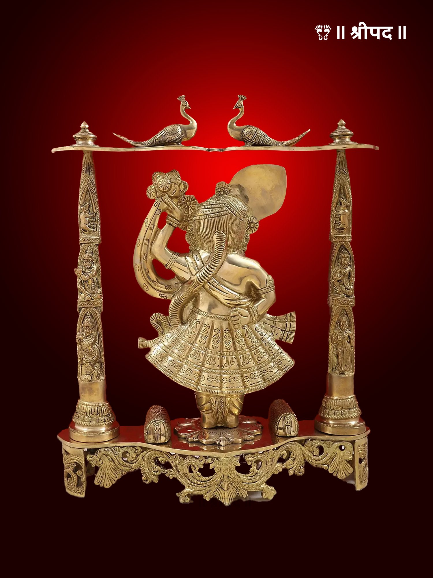 This statue is meticulously handcrafted, with intricate details on Shrinath Ji’s crown, ornaments, and flowing attire. The craftsmanship reflects traditional artistry, bringing out the essence of devotion and spirituality. The rich brass finish adds a timeless elegance to the idol, making it a striking centerpiece.