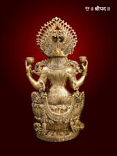 The 25-inch Sitting Devi Lakshmi Brass Statue is an exquisite representation of the goddess of wealth, prosperity, and abundance. Crafted with meticulous detail, this divine statue showcases Goddess Lakshmi seated gracefully on a lotus pedestal, symbolizing purity, wisdom, and spiritual enlightenment. Her serene expression and poised posture reflect divine blessings and tranquillity, while the flowing attire and intricate jewelry highlight the exceptional craftsmanship of skilled Indian artisans.