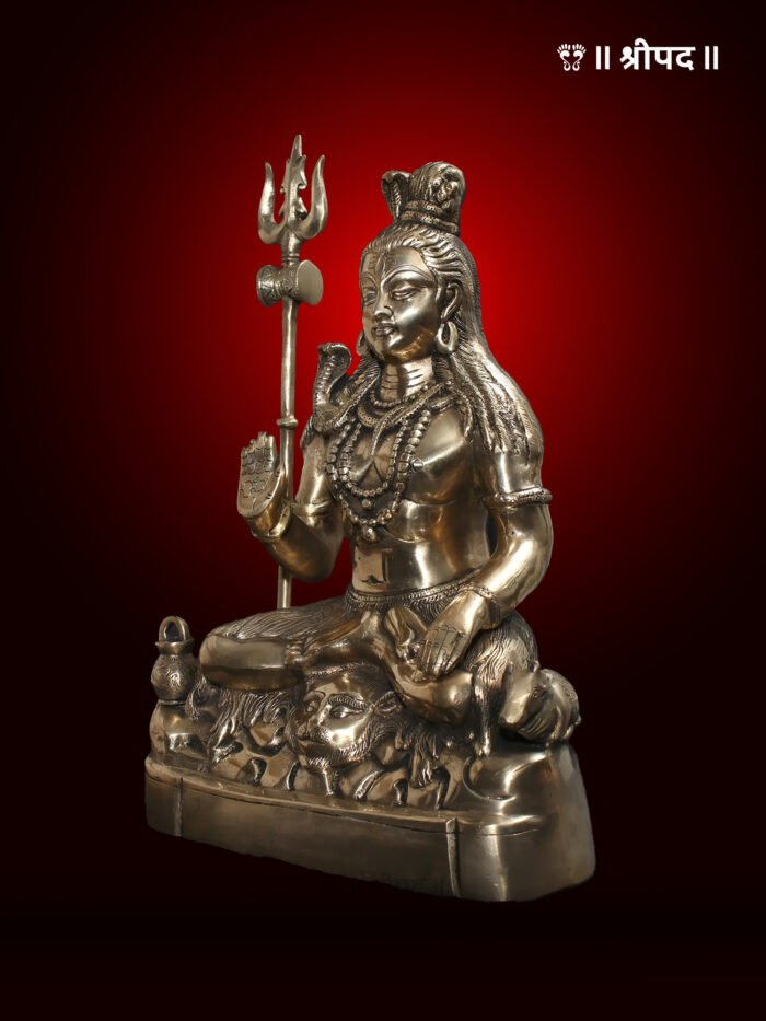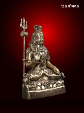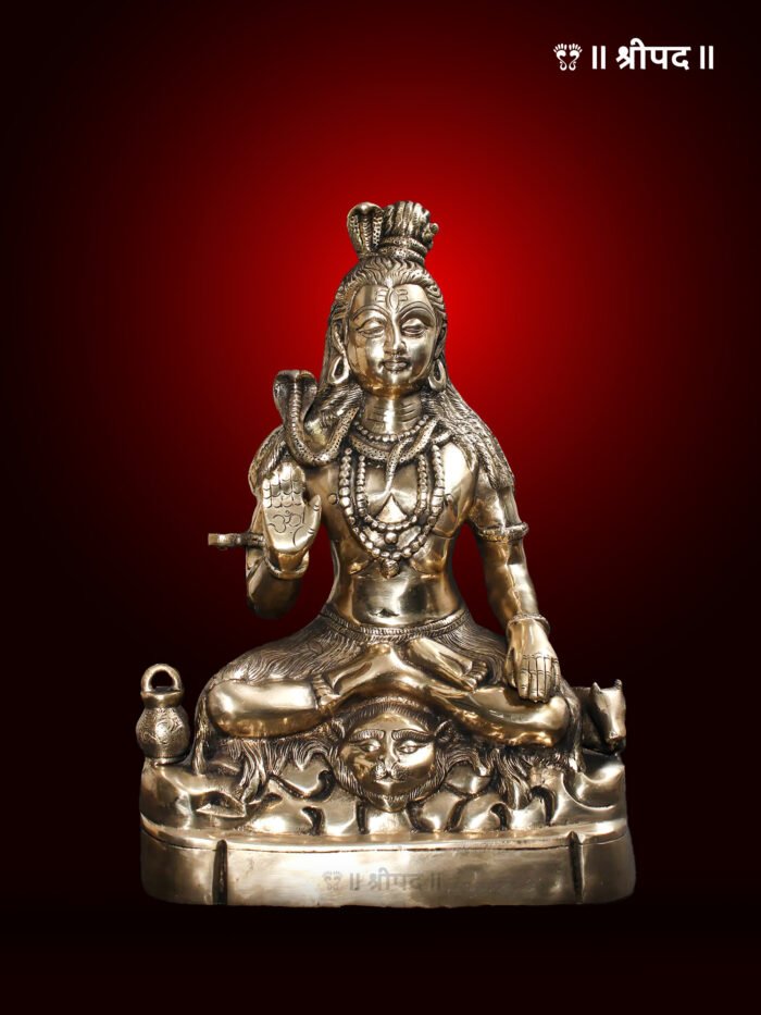 Crafted from high-quality brass, the statue showcases intricate details, from the flowing locks of his hair adorned with the crescent moon and the sacred Ganga, to the beautifully sculpted face and ornaments. The posture of Lord Shiva exudes peace and spiritual strength, making this idol an ideal centerpiece for home temples, meditation spaces, or sacred corners.